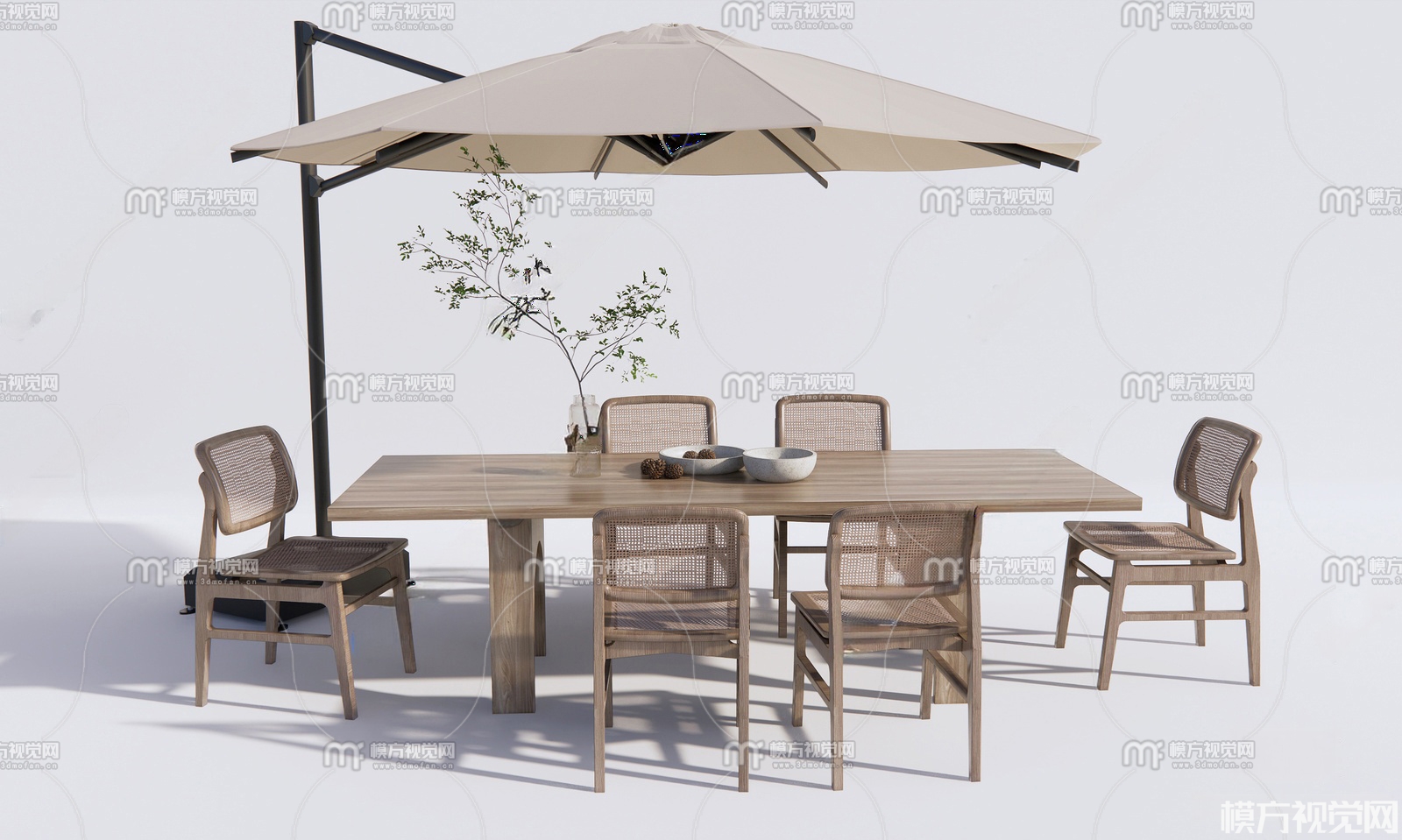 现代户外桌椅 遮阳伞3D模型(ID:0029669)