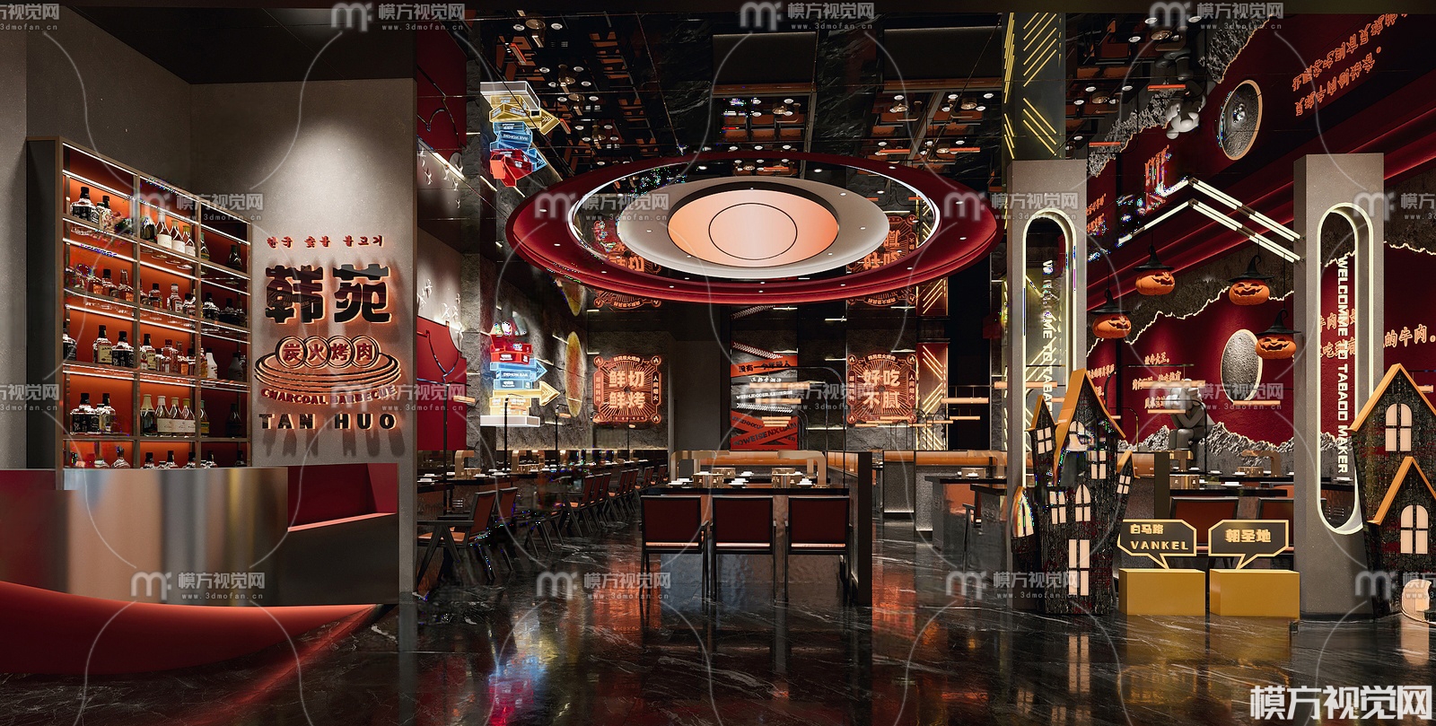 工业风韩式烤肉自助餐厅3D模型(ID:0029725)