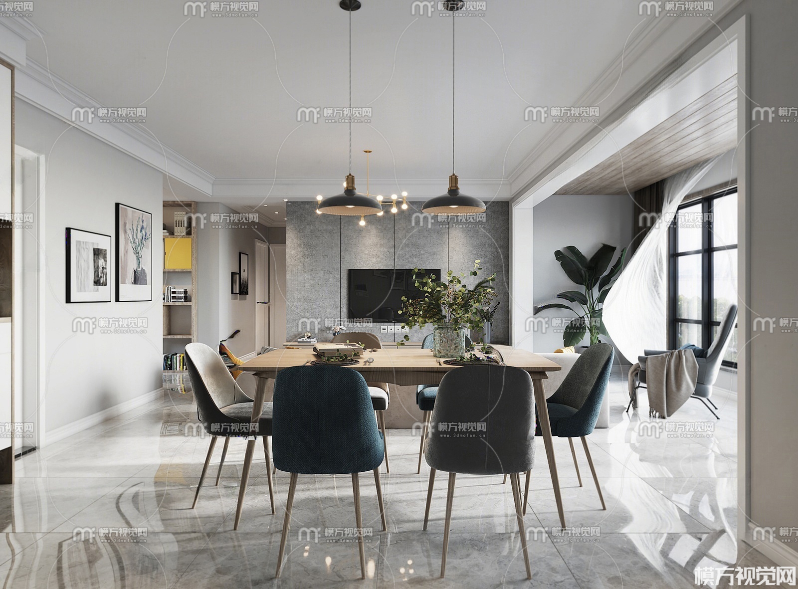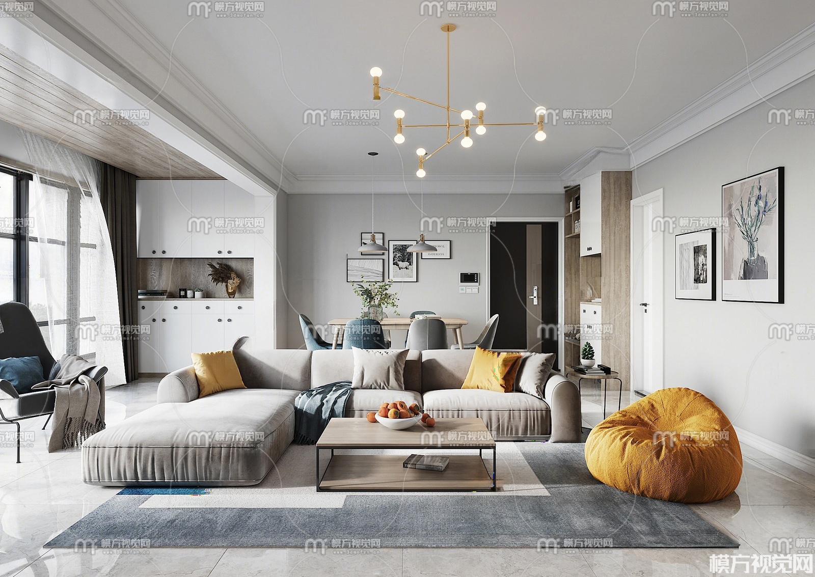 北欧轻奢客厅3D模型(ID:0029746)