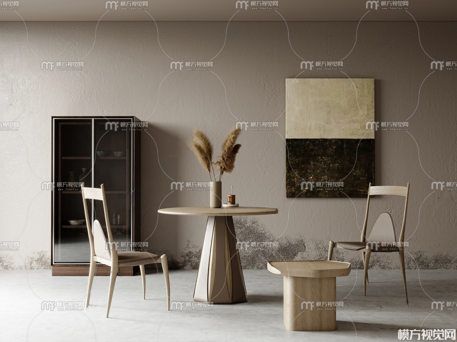 侘寂休闲桌椅组合3D模型(ID:0029772)