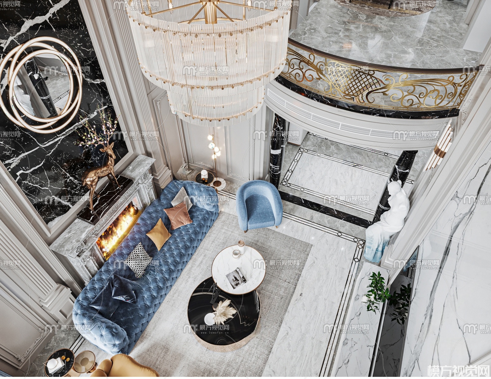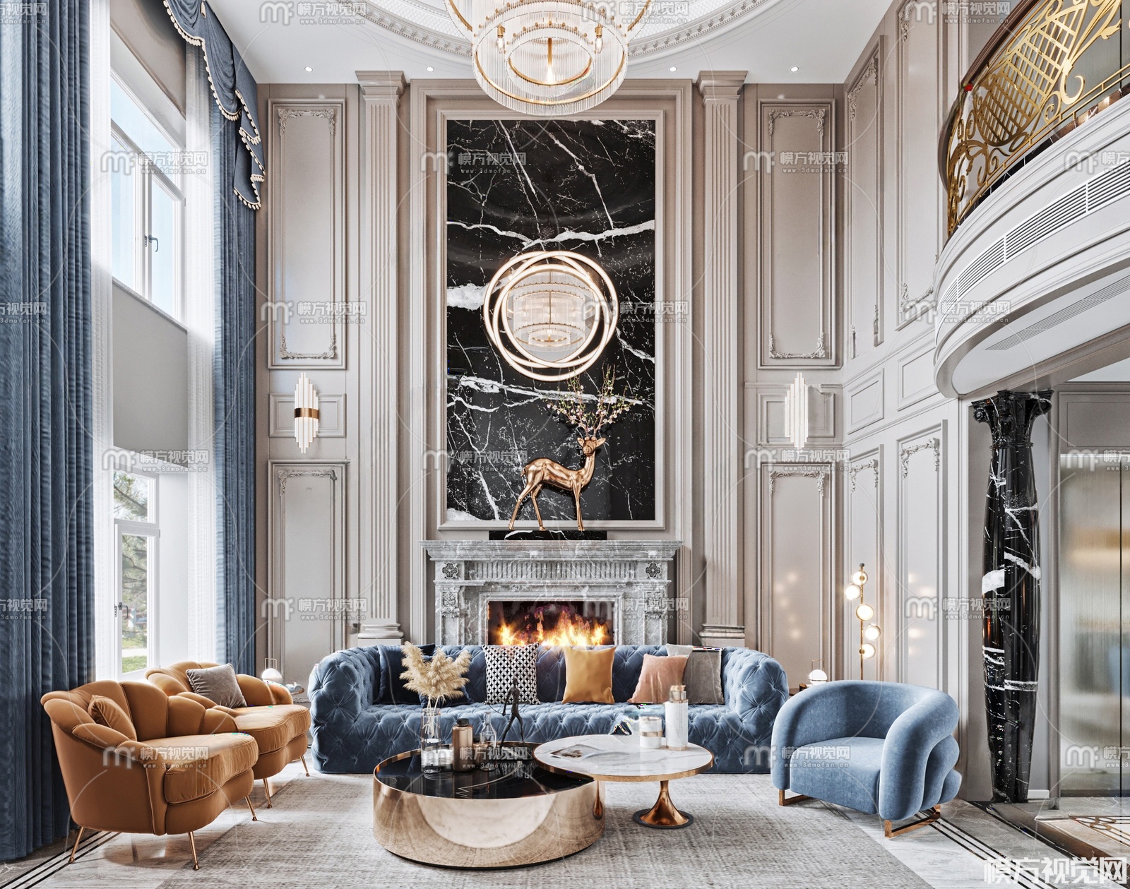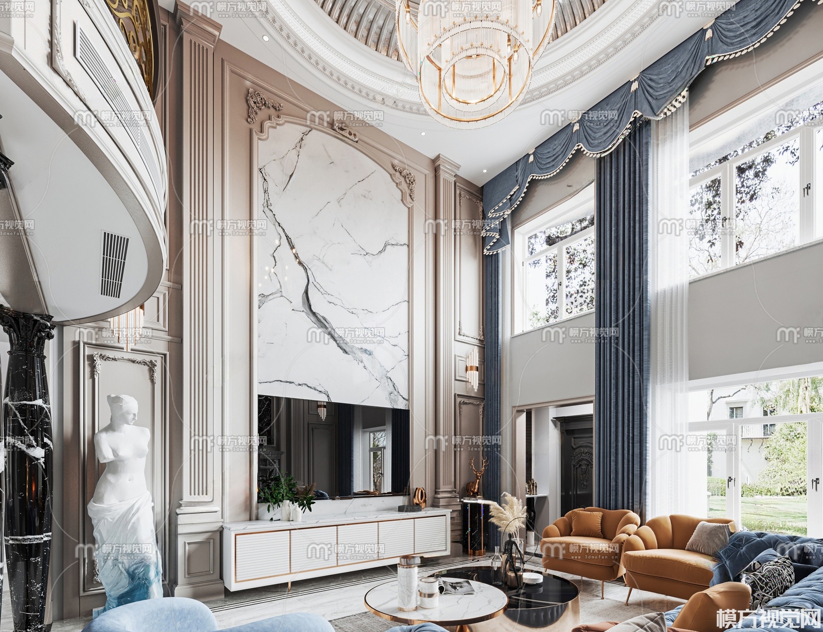法式别墅客厅3D模型(ID:0029786)