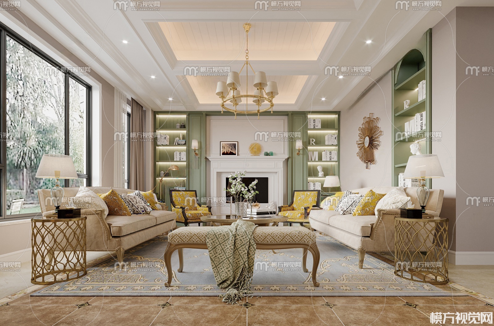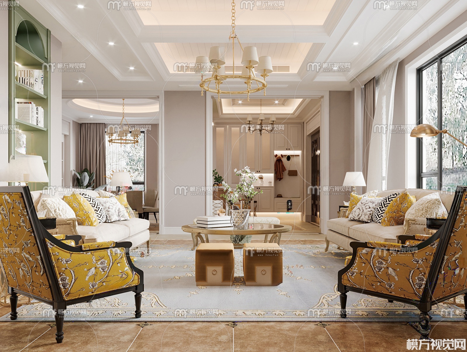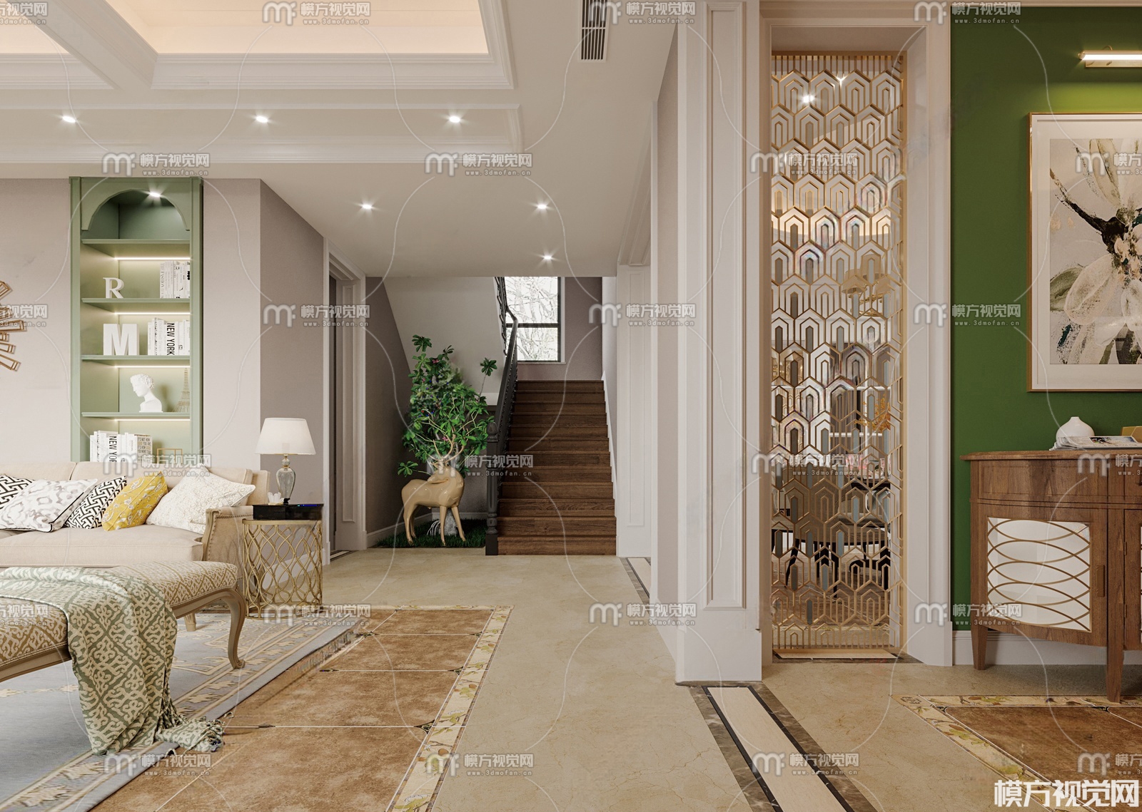 美式别墅客厅3D模型(ID:0029830)
