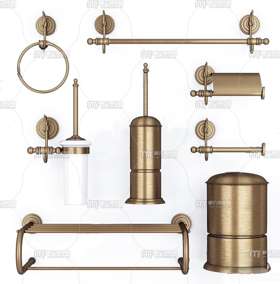 毛巾架 马桶刷 卫浴五金件3D模型(ID:0029877)