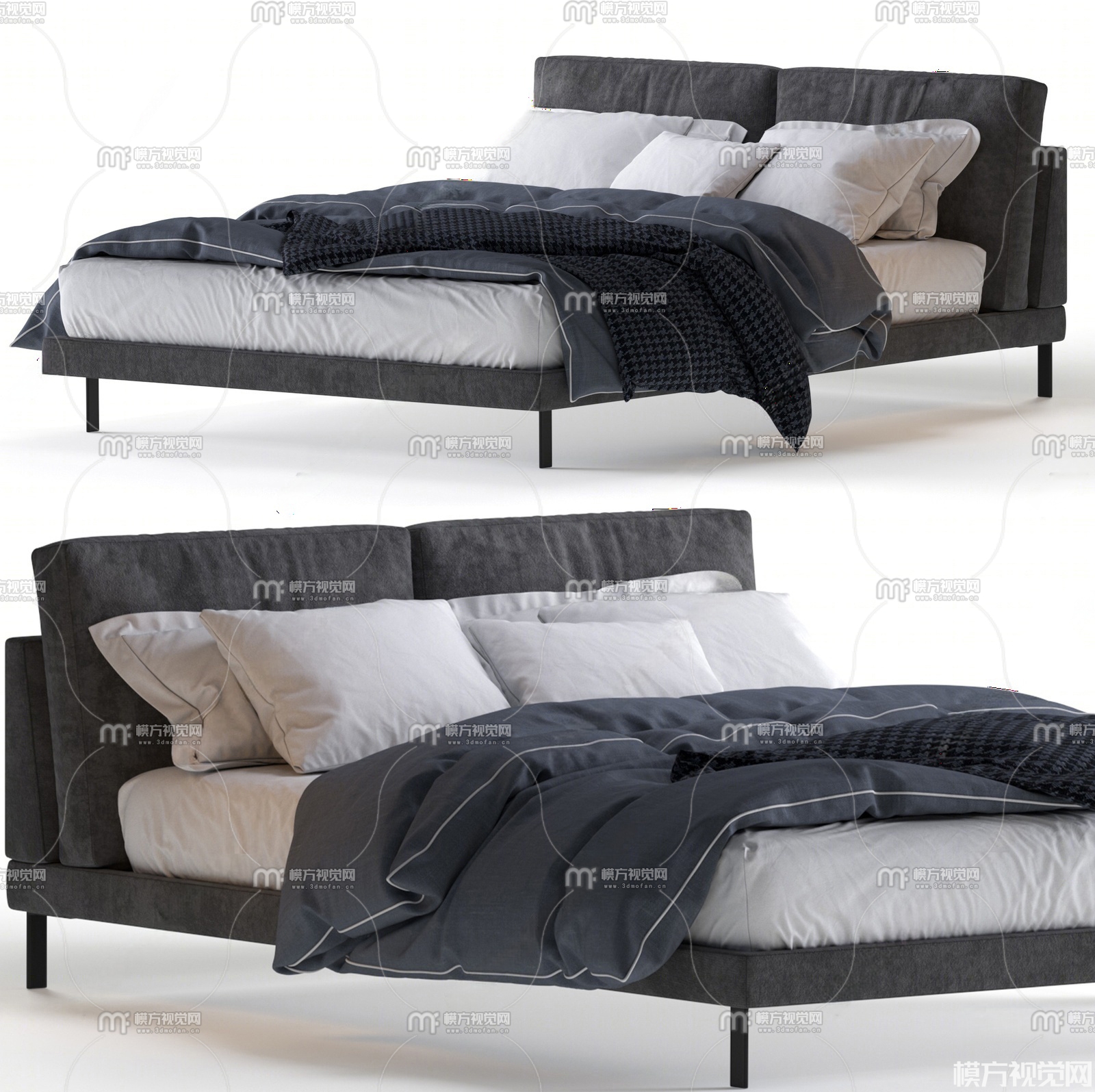 现代布艺双人床3D模型(ID:0029943)
