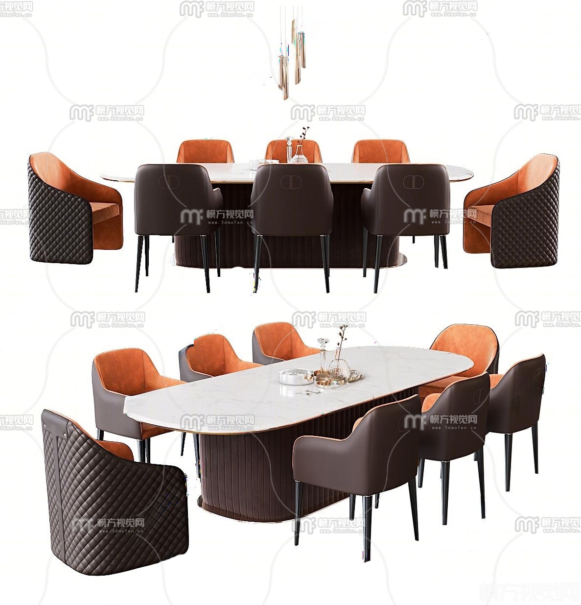 现代餐桌椅吊灯模型组合3D模型(ID:0029955)