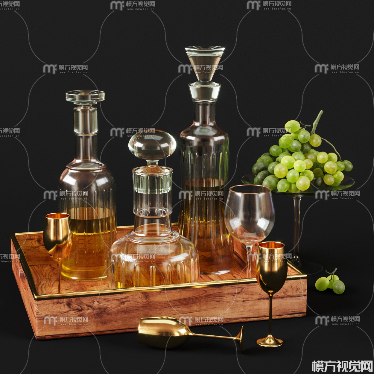 现代酒杯 酒水3D模型(ID:0029976)