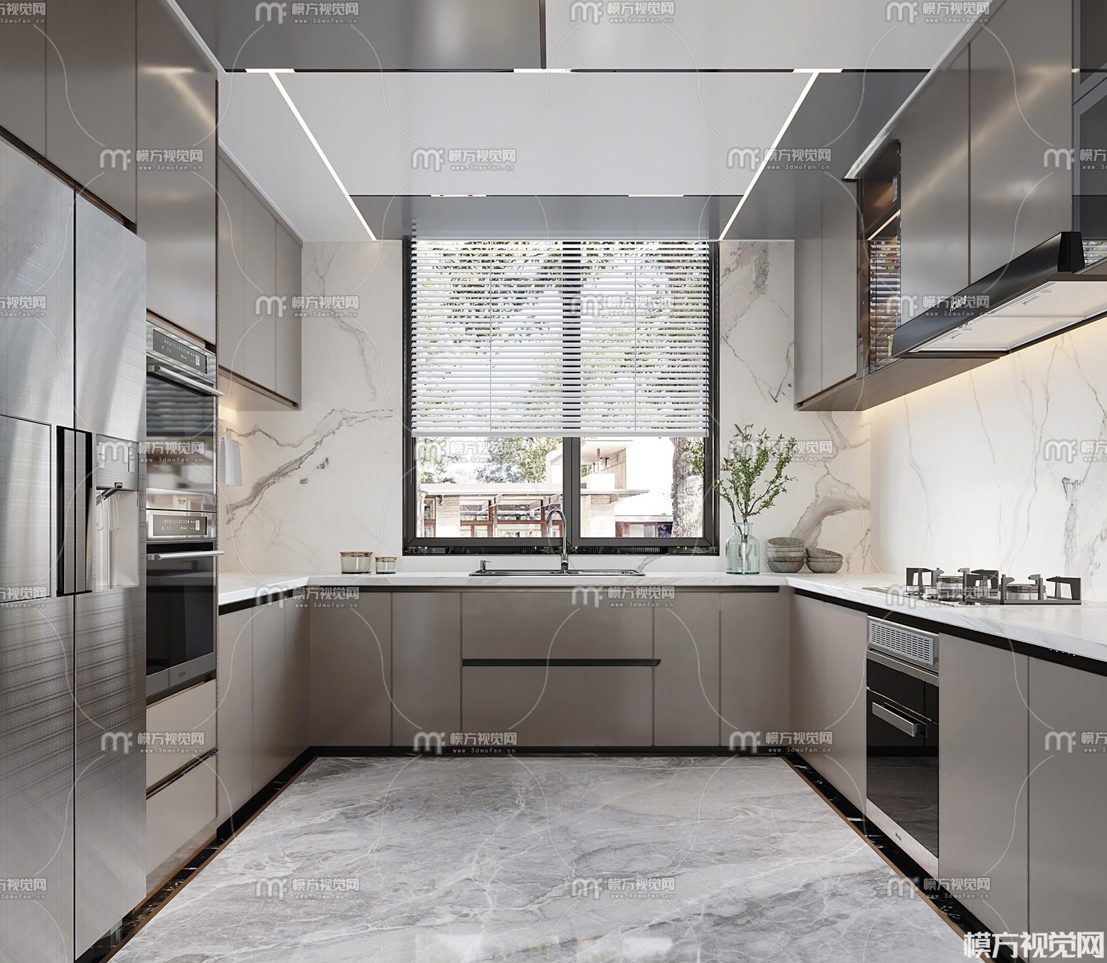 现代封闭式厨房3D模型(ID:0030036)