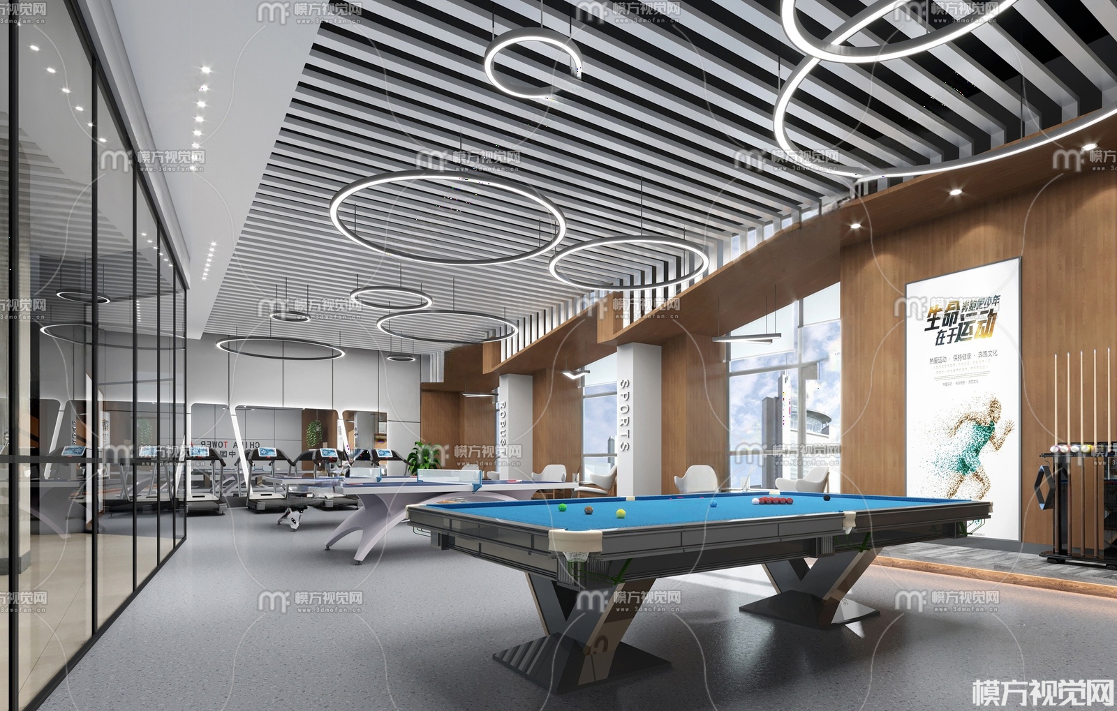 现代公司台球健身房3D模型(ID:0030052)