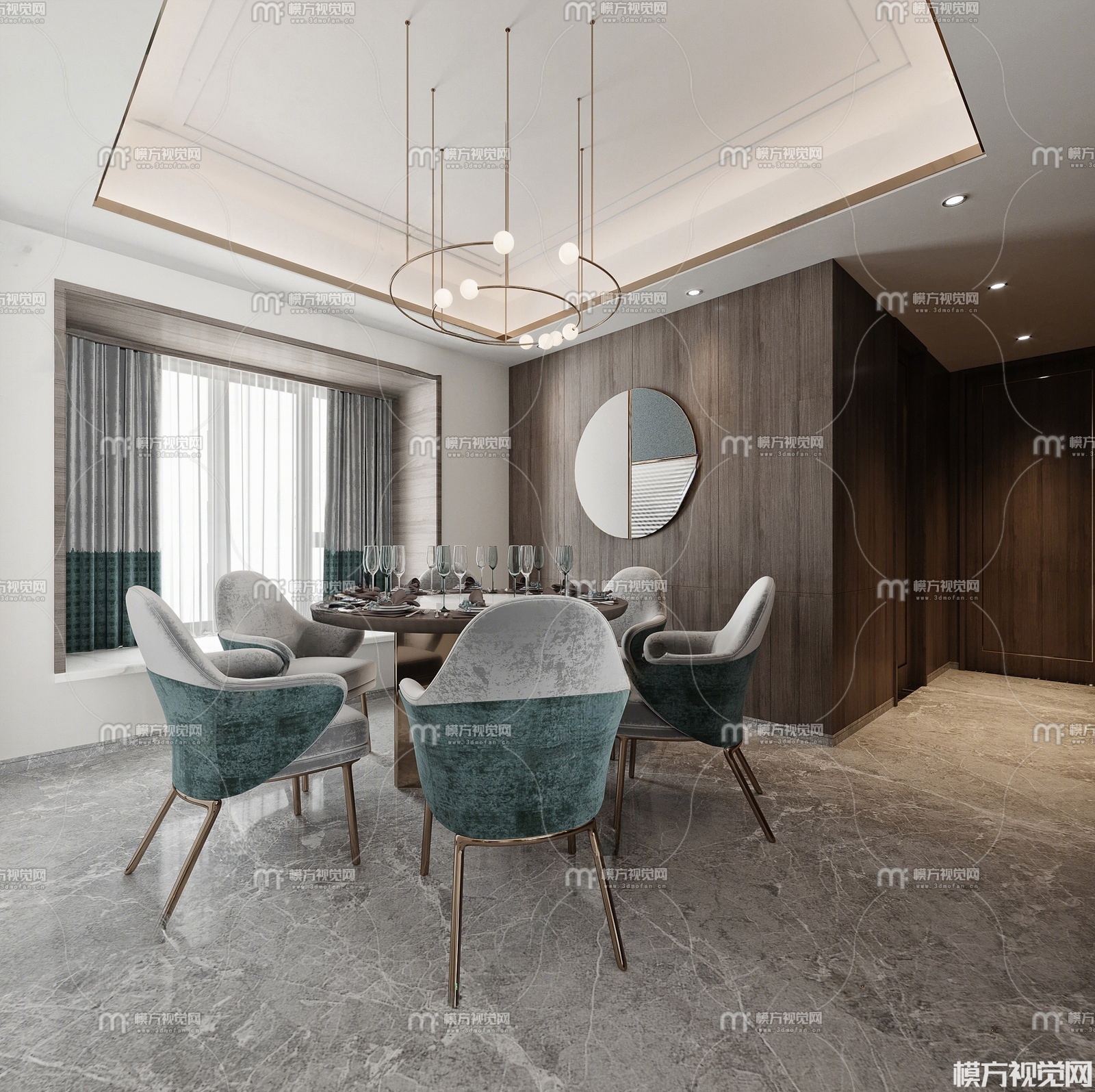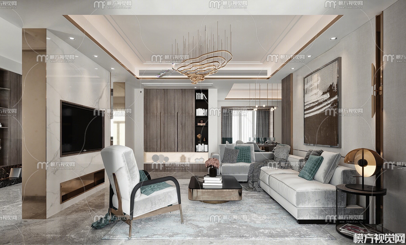 现代客厅餐厅玄关3D模型(ID:0030151)