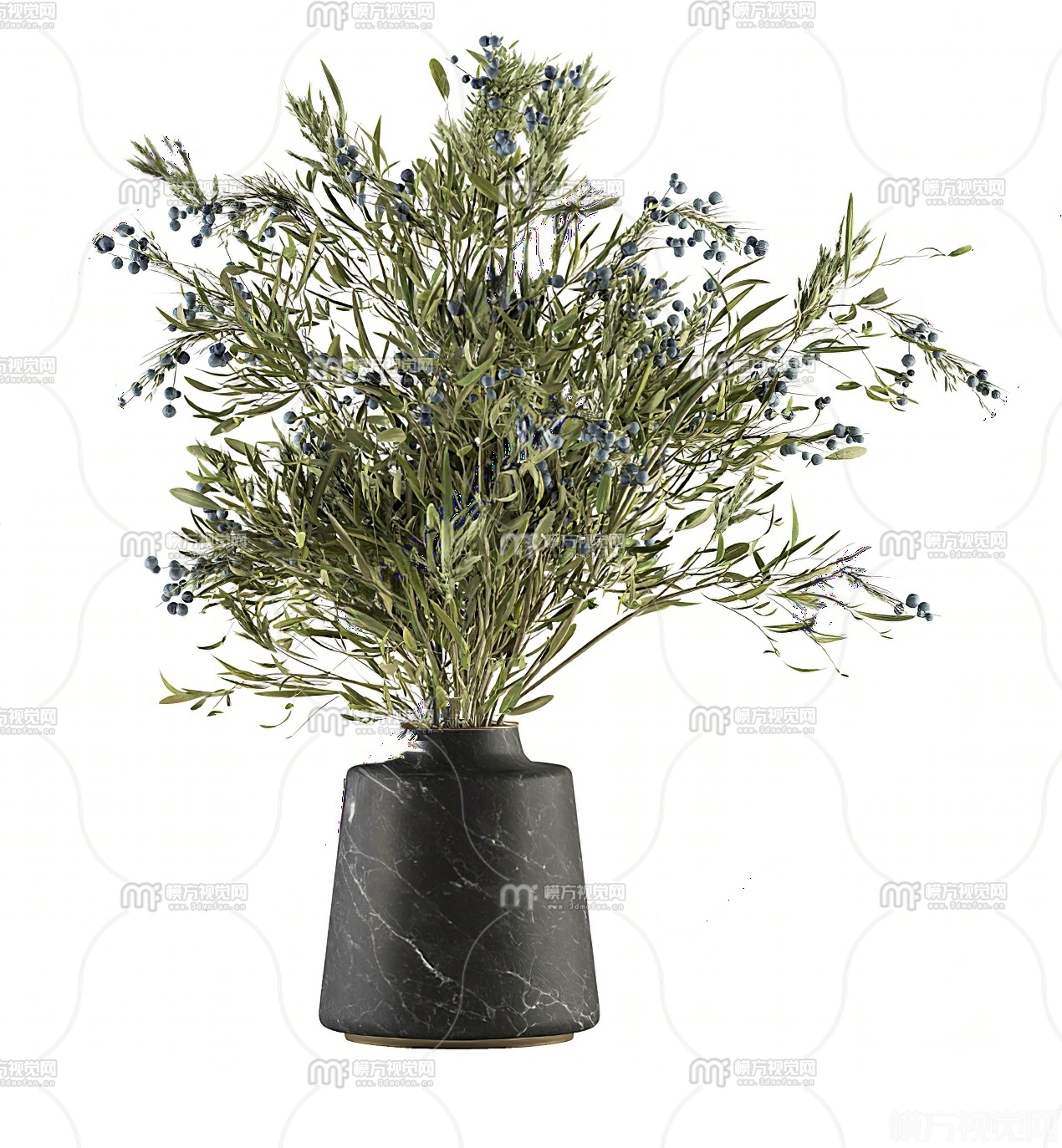 现代绿植花瓶 花艺3D模型(ID:0030160)