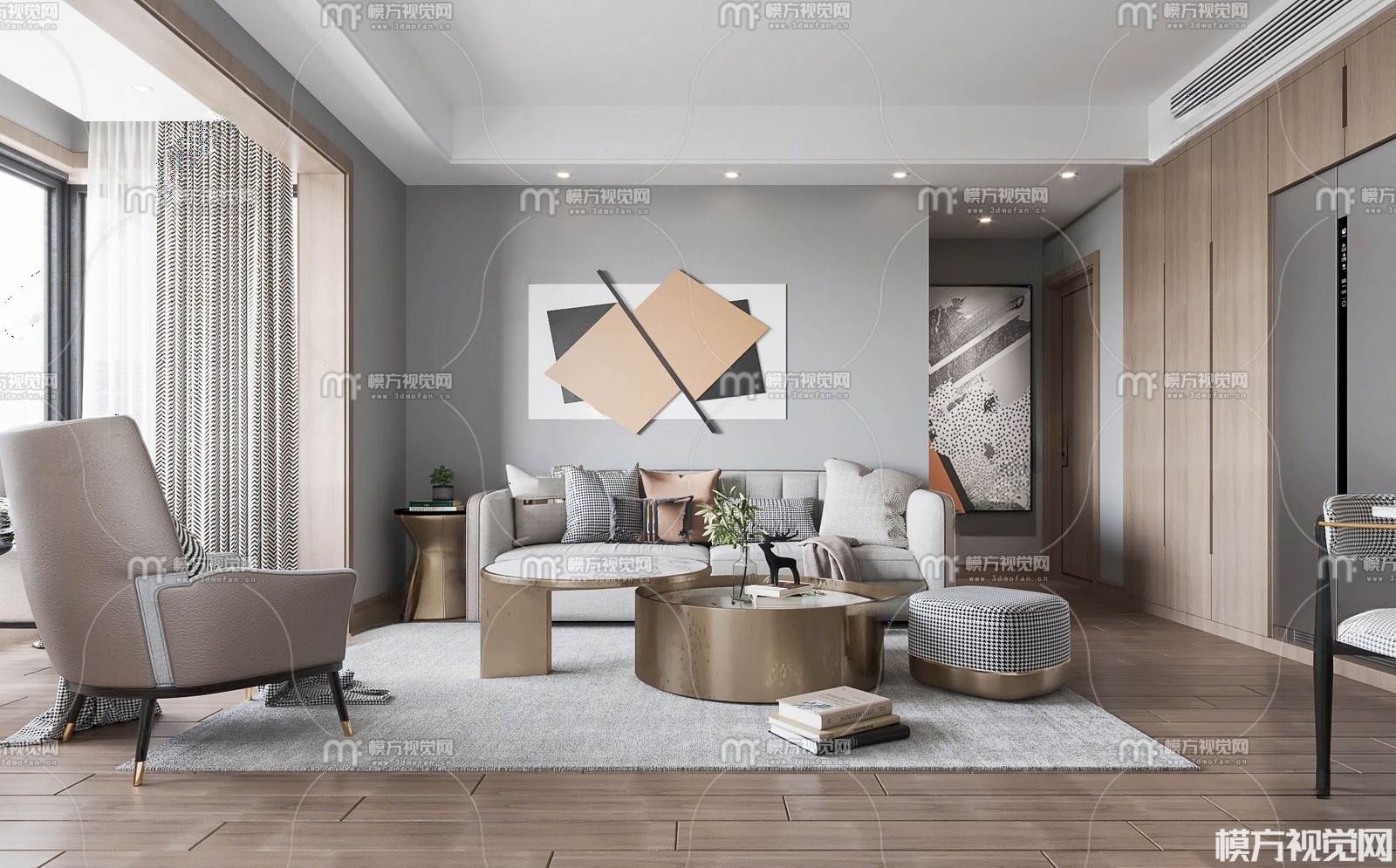 现代轻奢客厅3D模型(ID:0030202)