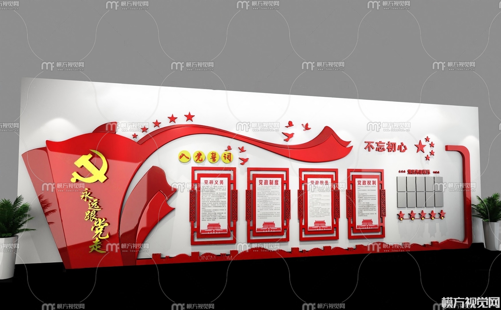 党建文化墙3D模型(ID:0030420)