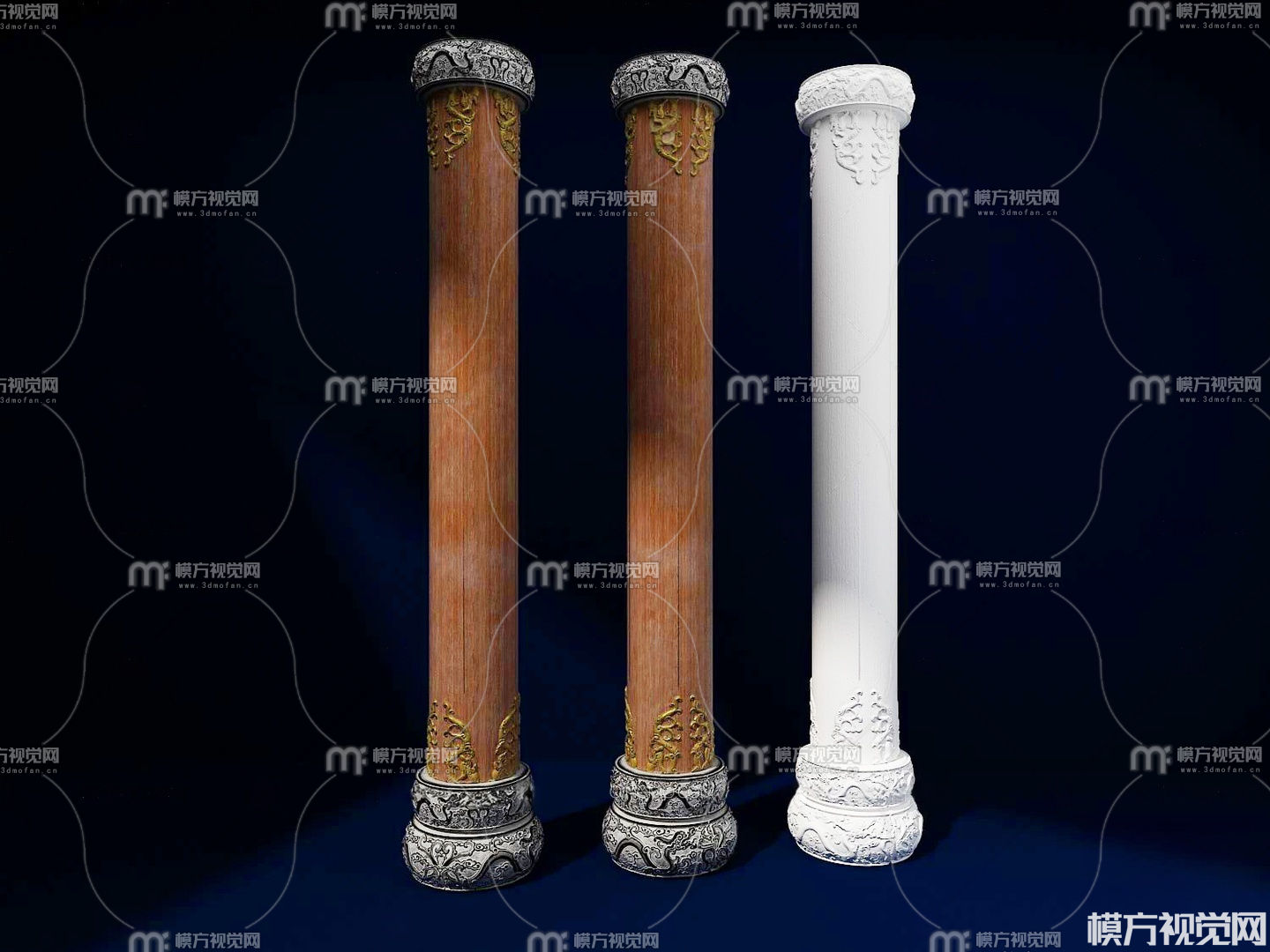 新中式 雕花柱子龙纹底座3D模型(ID:0030499)