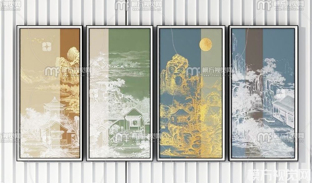 新中式 挂画组合3D模型(ID:0030597)