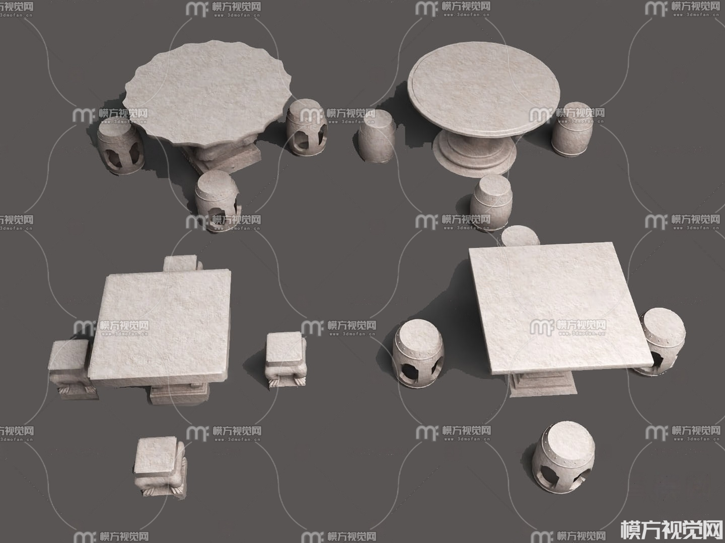 石材户外桌椅3D模型(ID:0030620)