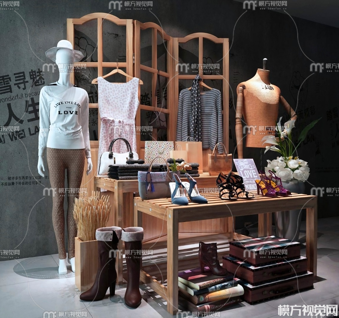 服装店展示架3D模型(ID:0030632)