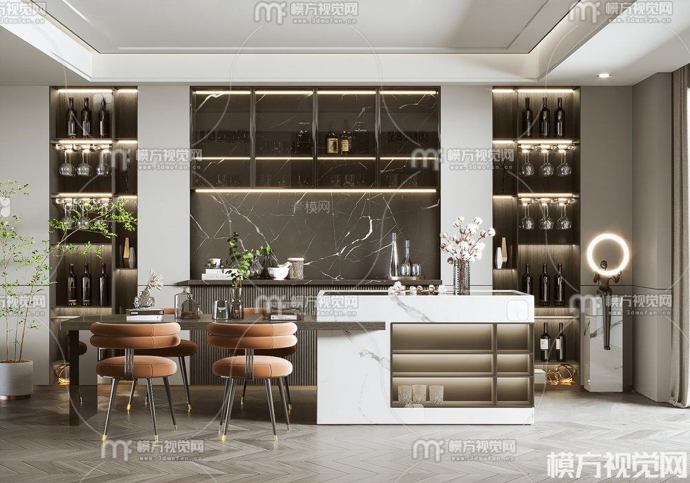 现代餐厅 餐桌 中岛台3D模型(ID:0030681)