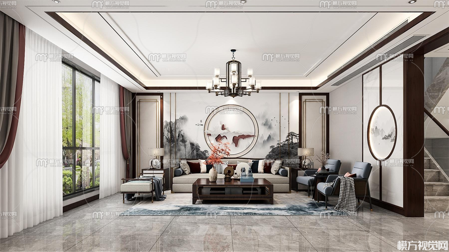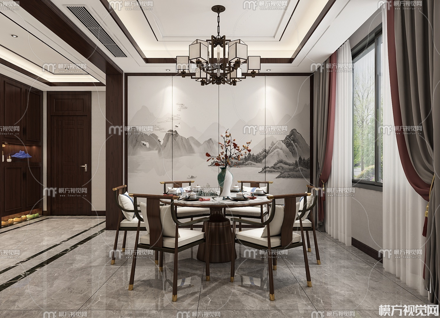 新中式客餐厅3D模型(ID:0030689)