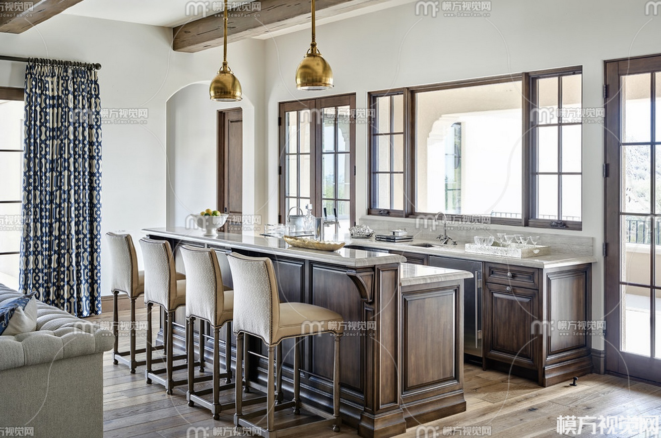 美式吧台敞开式厨房3D模型(ID:0030727)