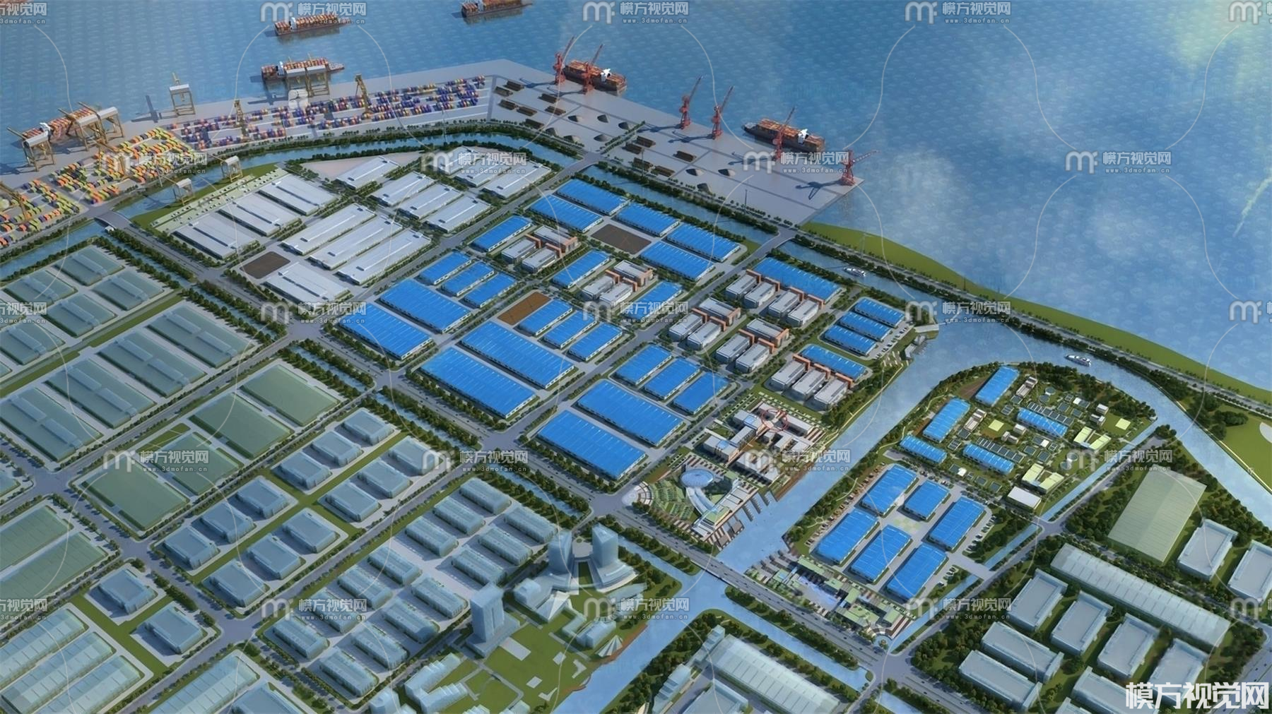 工厂码头鸟瞰3D模型(ID:0030748)