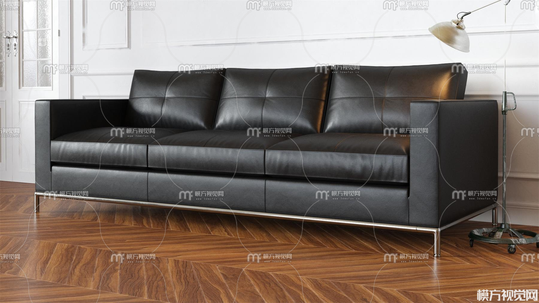 三人皮革沙发3D模型(ID:0030801)