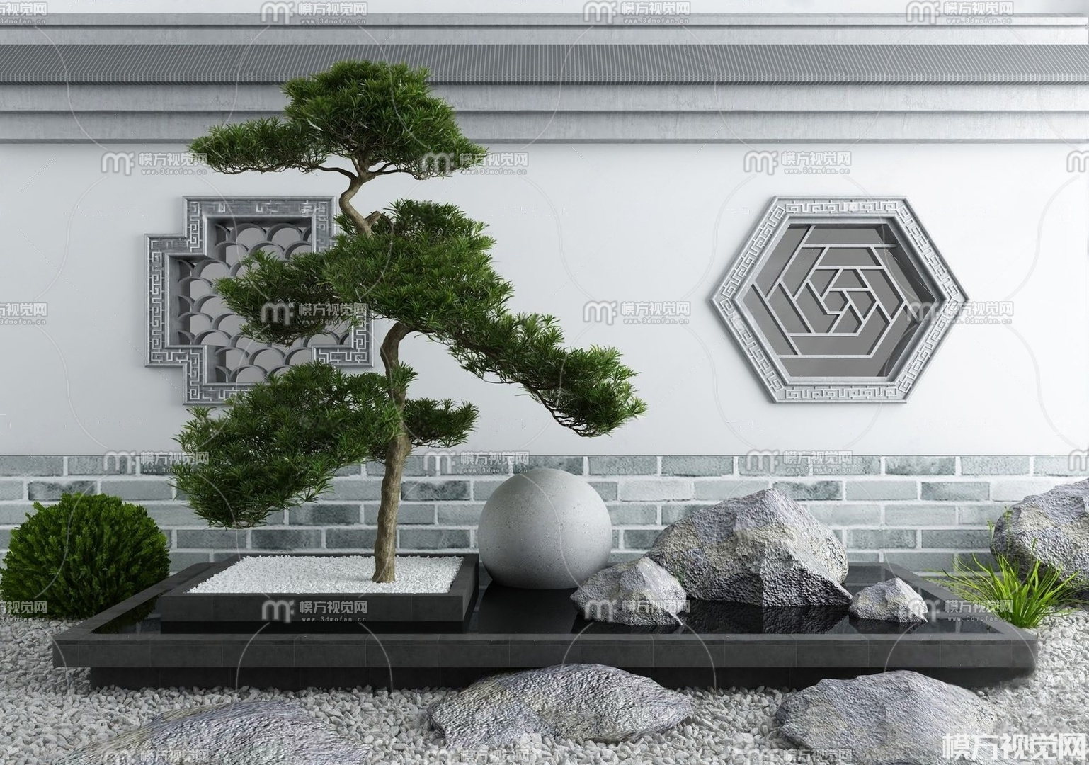 庭院景观 水景 假山3D模型(ID:0030989)