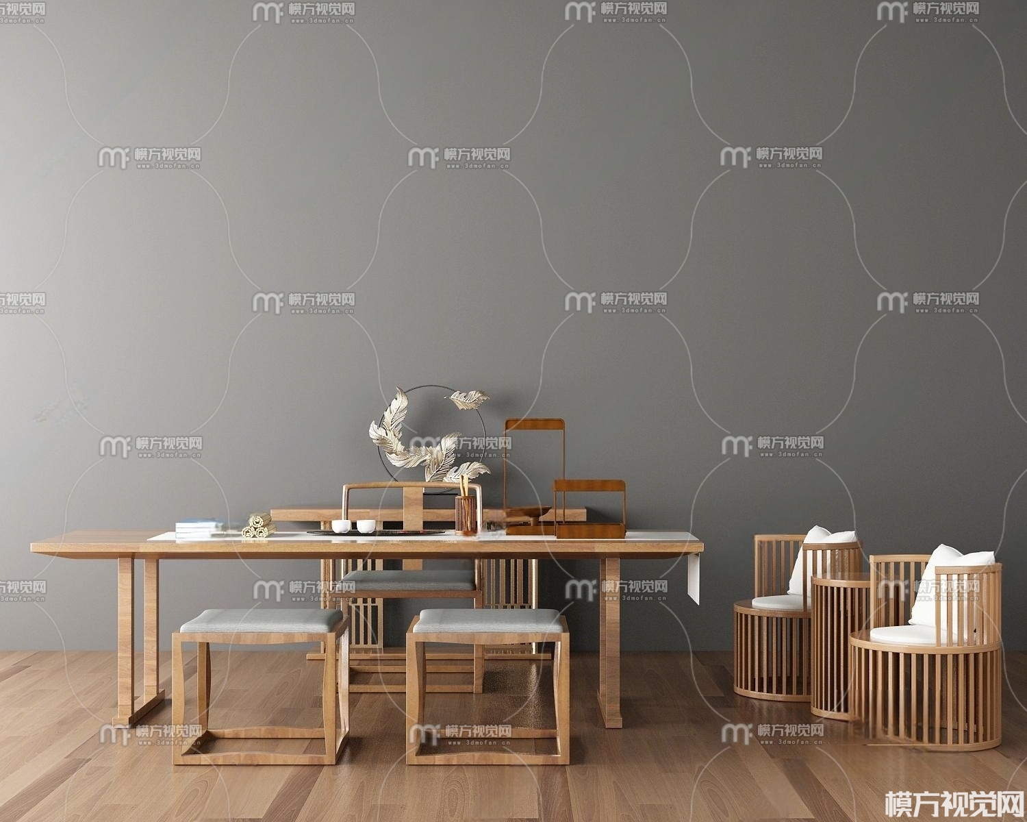 新中式茶桌椅3D模型(ID:0003100)