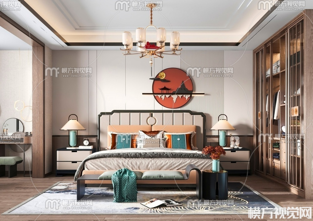新中式卧室3D模型(ID:0031027)