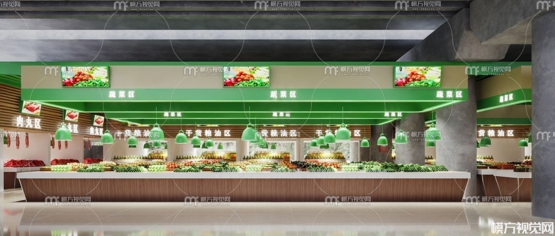 现代菜市场超市3D模型(ID:0031045)