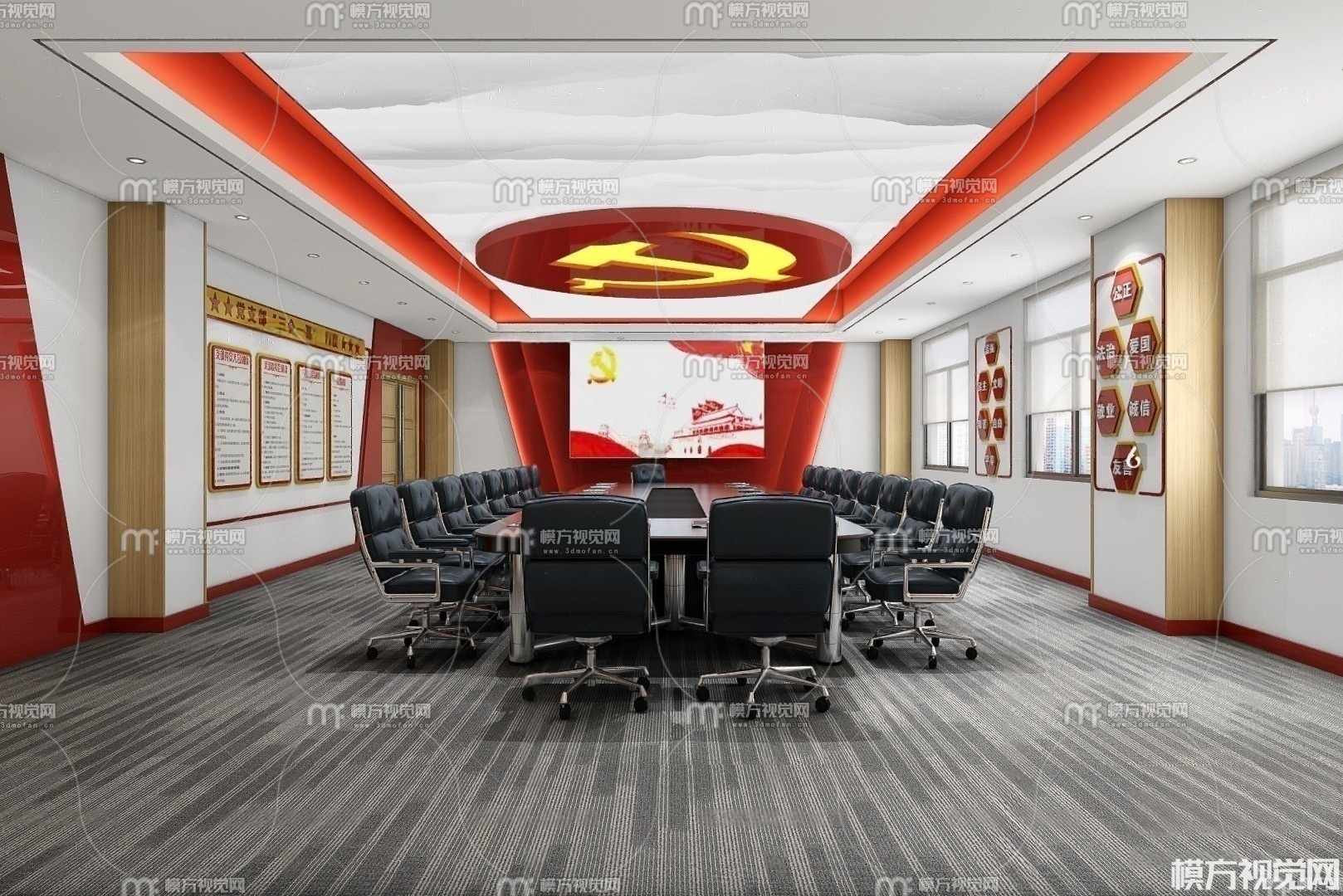 现代党建会议室3D模型(ID:0031058)