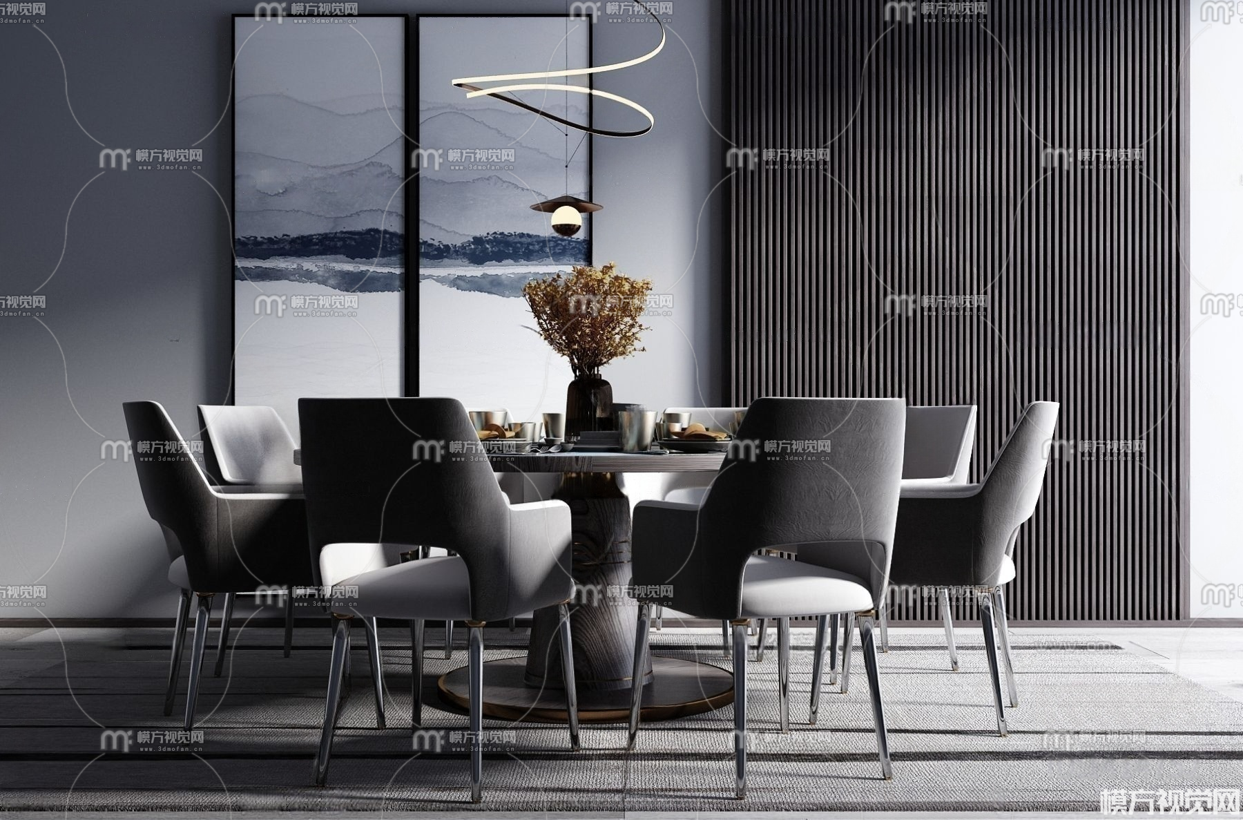 现代轻奢圆形餐桌椅3D模型(ID:0031078)