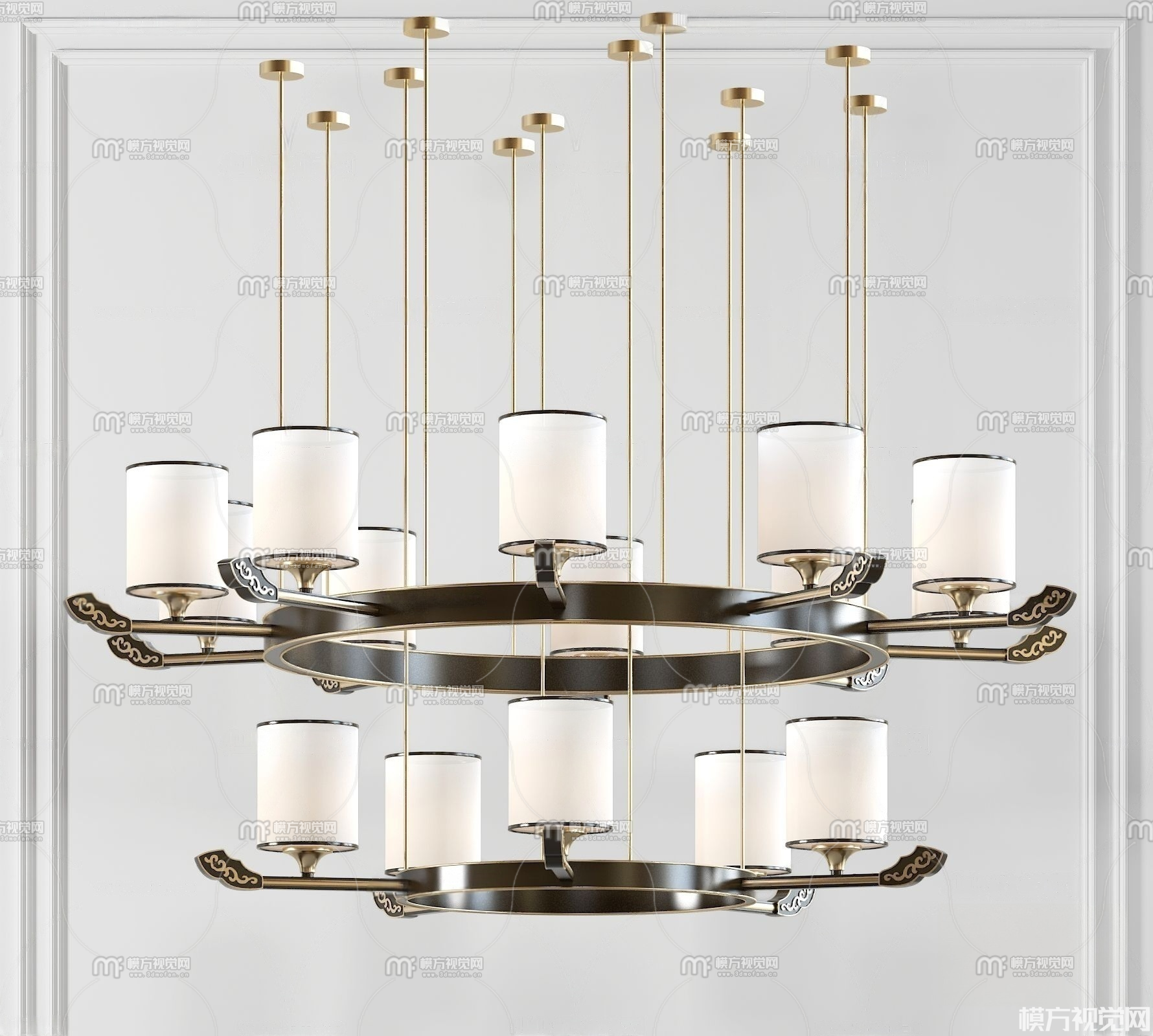 新中式轻奢环形多头吊灯3D模型(ID:0031182)