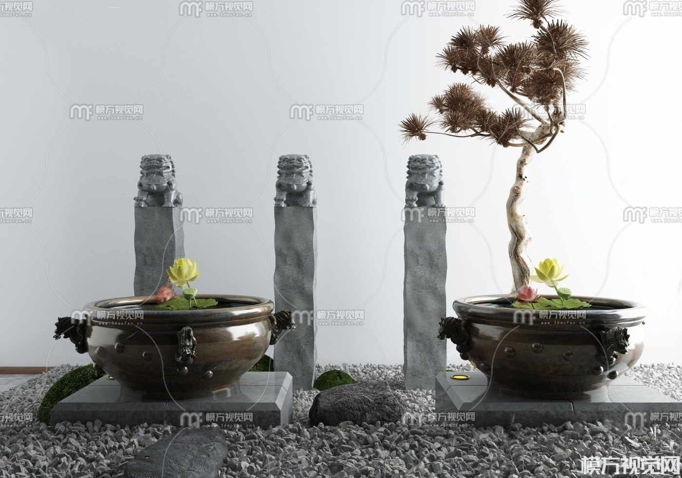 新中式石柱水缸景观小品3D模型(ID:0031184)