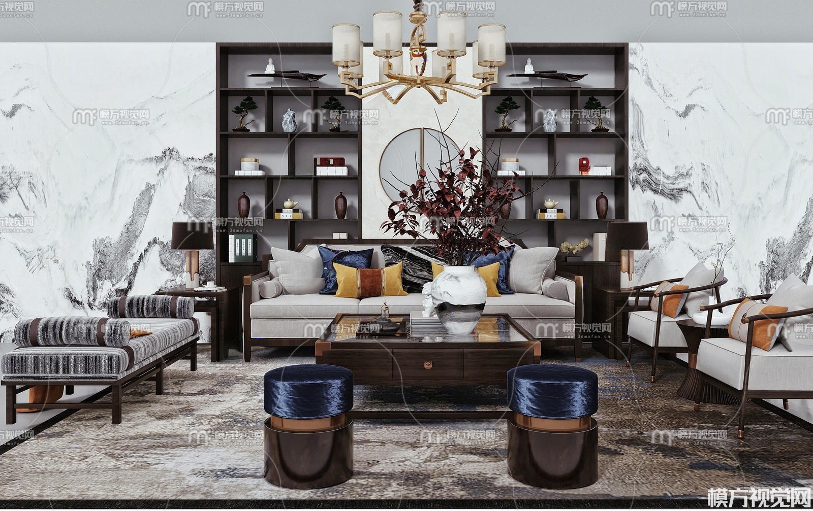新中式沙发茶几组合3D模型(ID:0031469)
