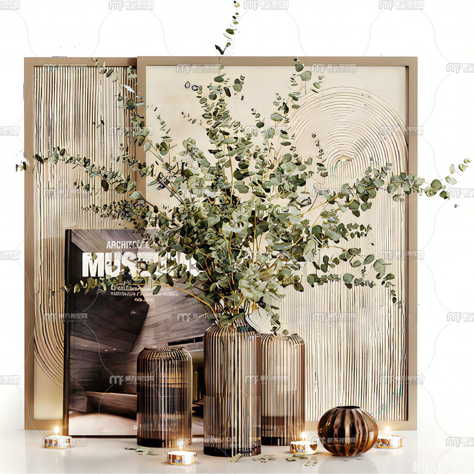 现代玻璃花瓶饰品摆件3D模型(ID:0031517)