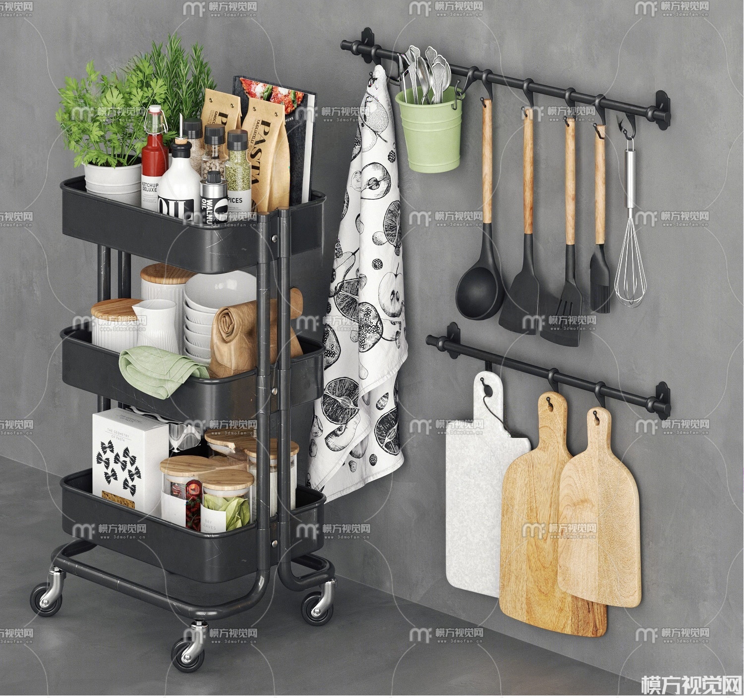 现代厨房用品组合3D模型(ID:0031529)