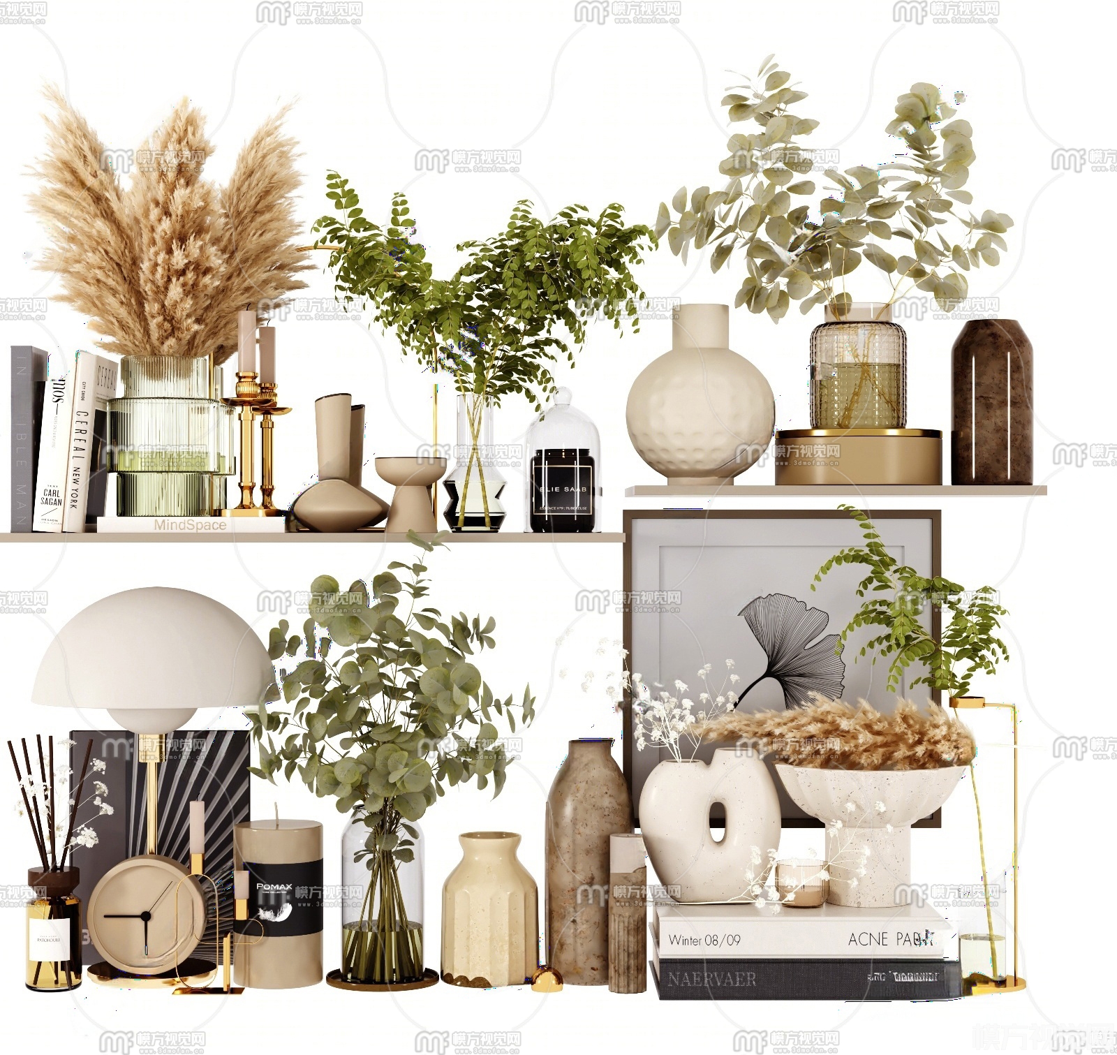 现代书籍花瓶摆件3D模型(ID:0031560)