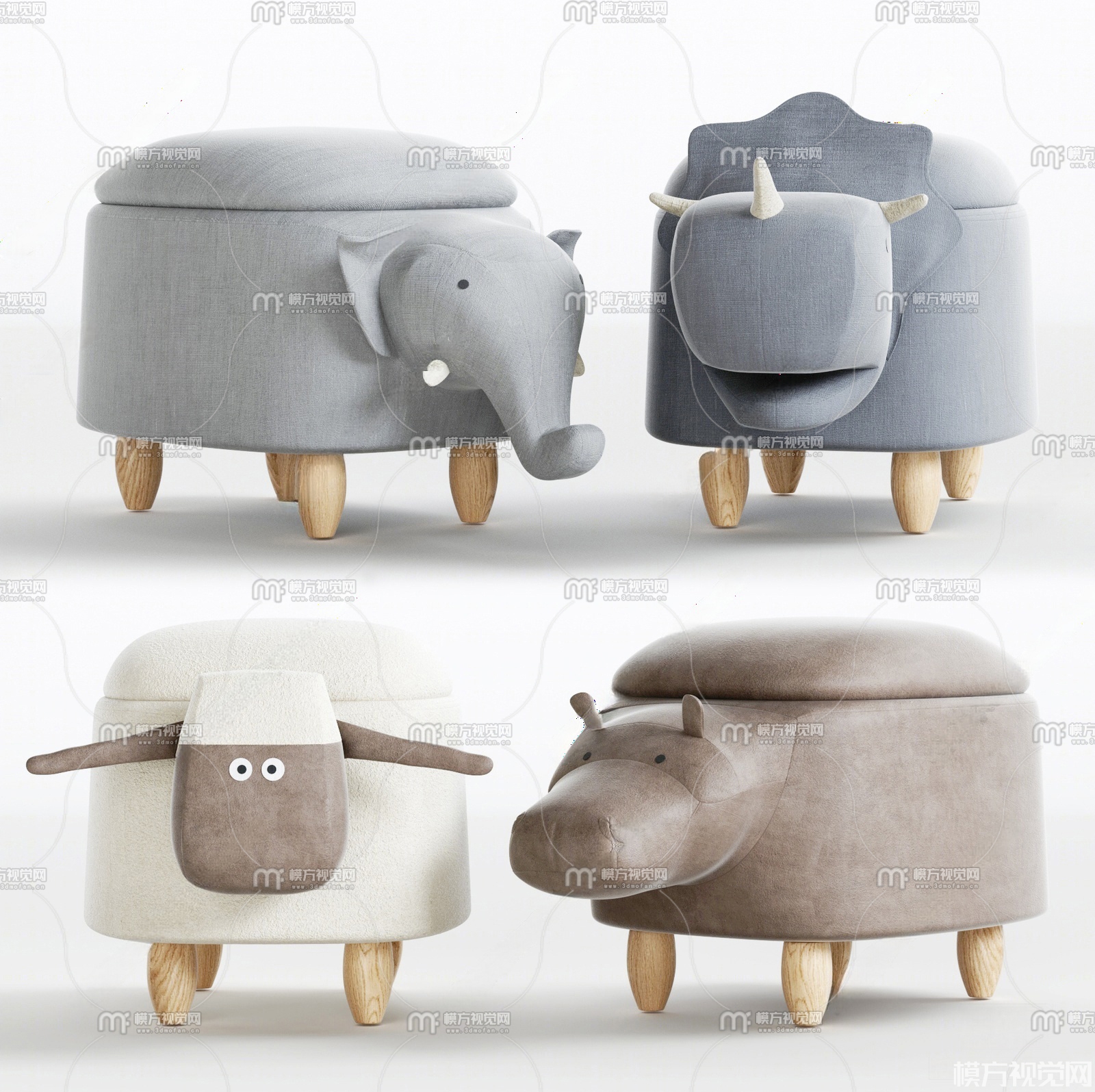 北欧儿童动物坐椅3D模型(ID:0031722)