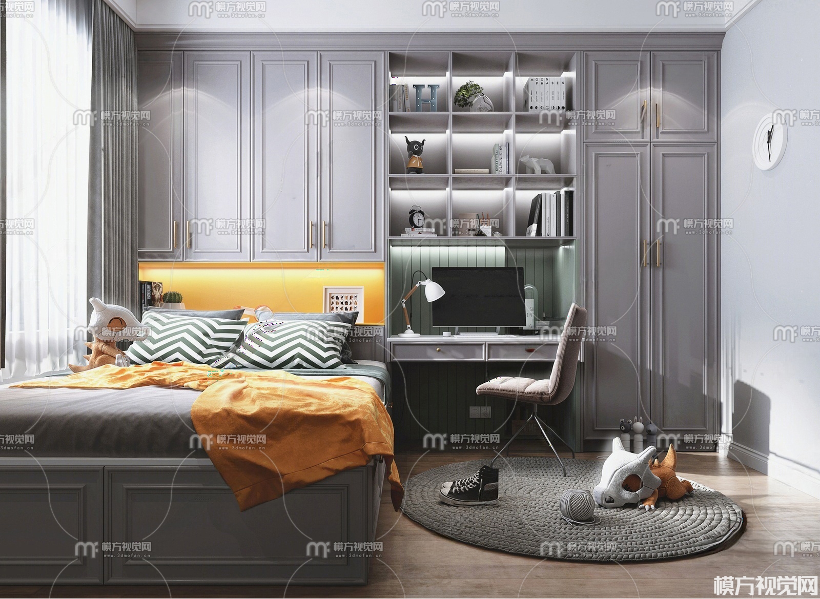 北欧风格榻榻米儿童房3D模型(ID:0031740)