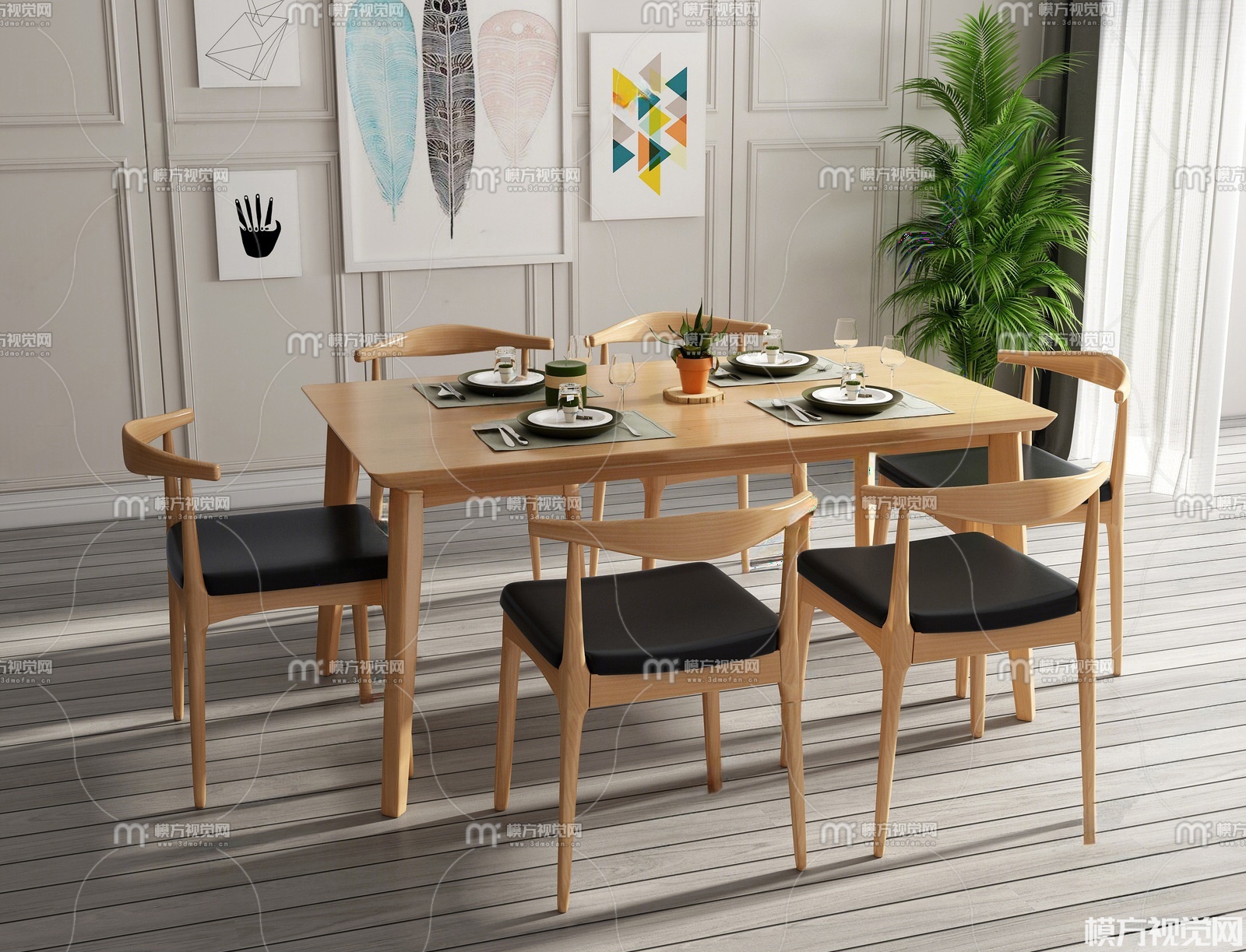 北欧实木餐桌椅组合3D模型(ID:0031818)