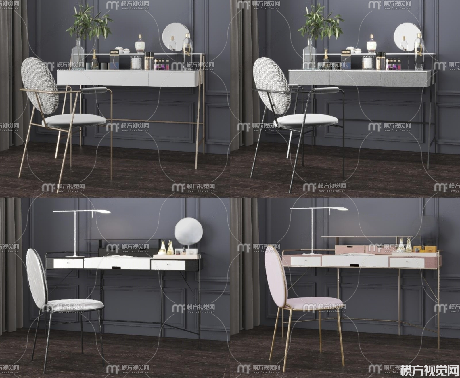 北欧梳妆台组合3D模型(ID:0031841)