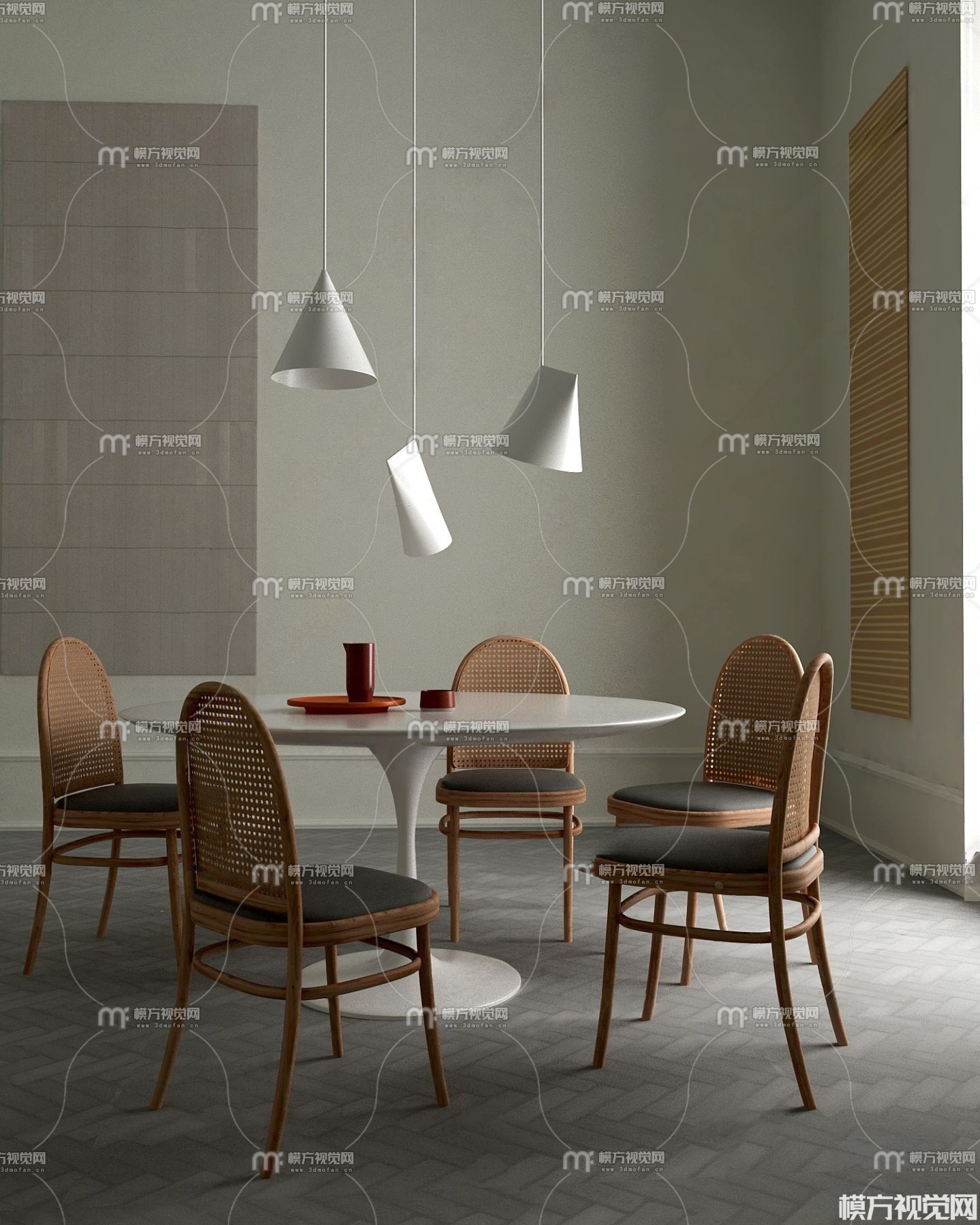 北欧藤编圆形餐桌椅组合3D模型(ID:0031854)
