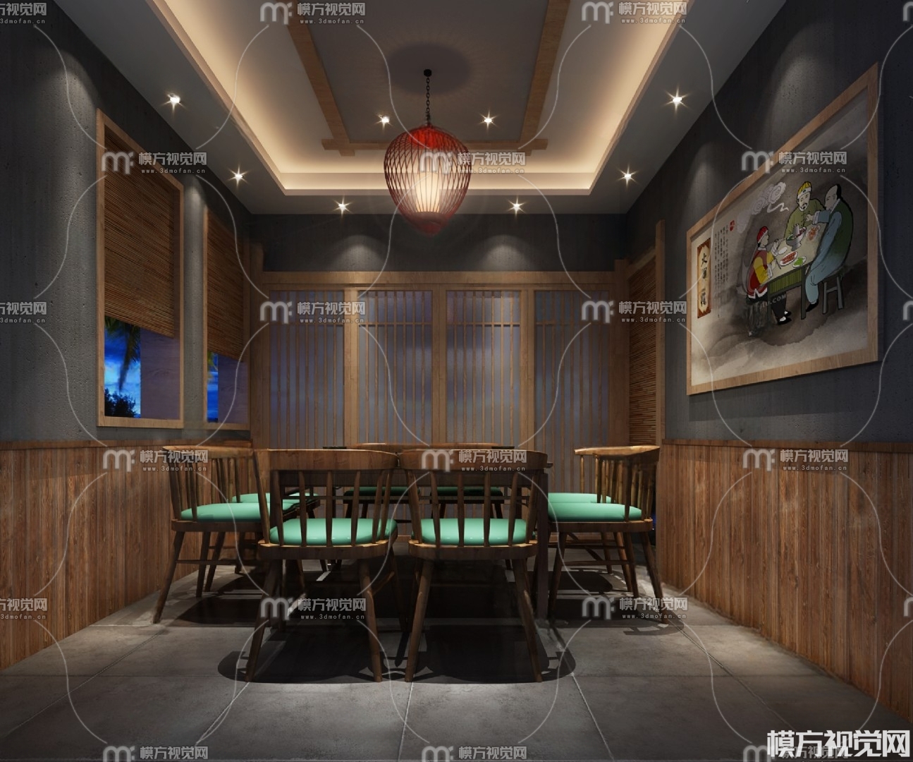 新中式餐厅包厢3D模型(ID:0003187)