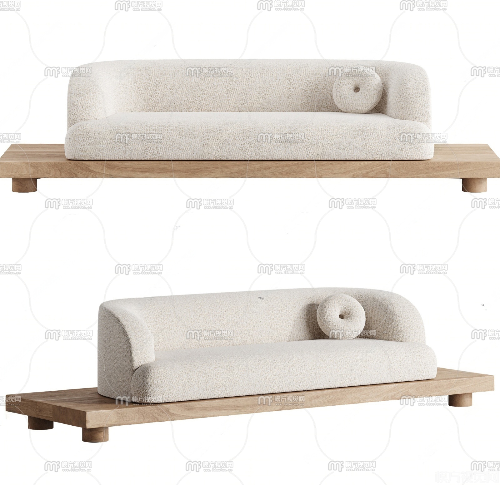 侘寂布艺三人沙发3D模型(ID:0031938)