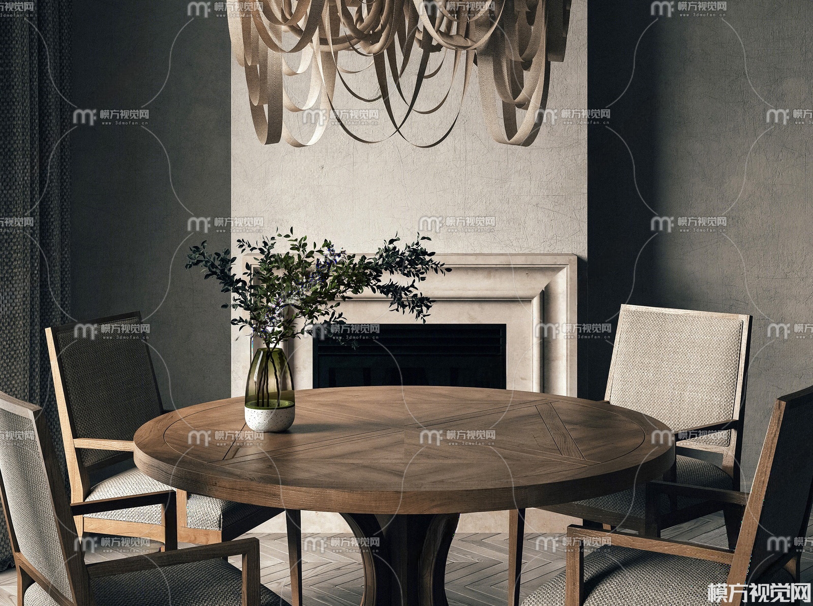 侘寂餐桌椅组合3D模型(ID:0031948)