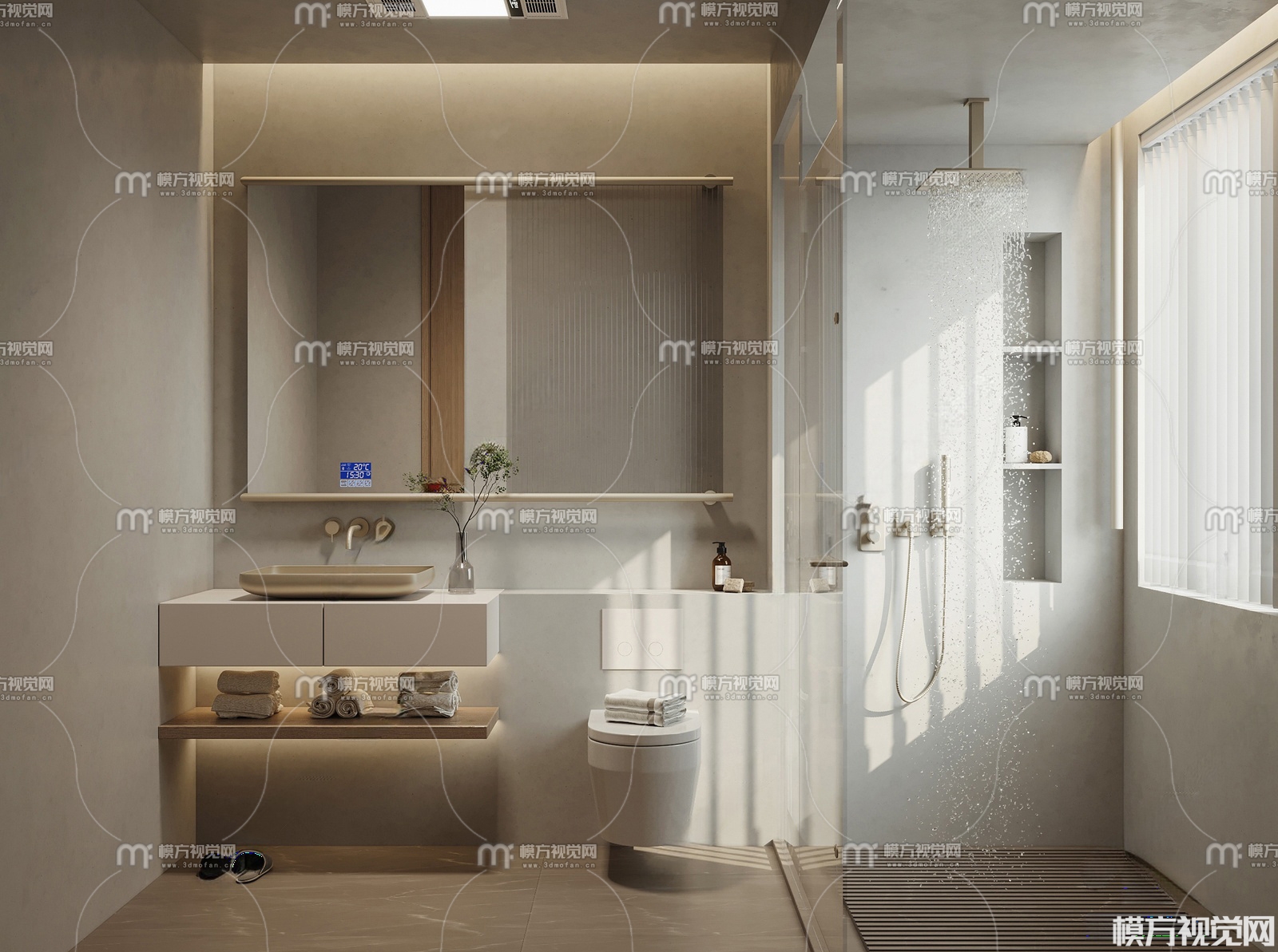 侘寂风卫生间浴室3D模型(ID:0031993)