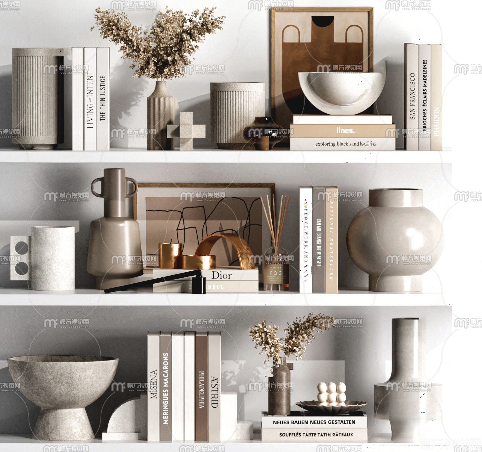 侘寂书本饰品摆件3D模型(ID:0032059)