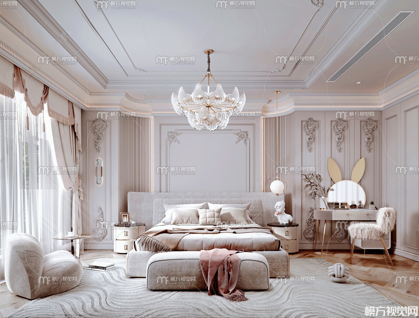 法式卧室主人房3D模型(ID:0032155)