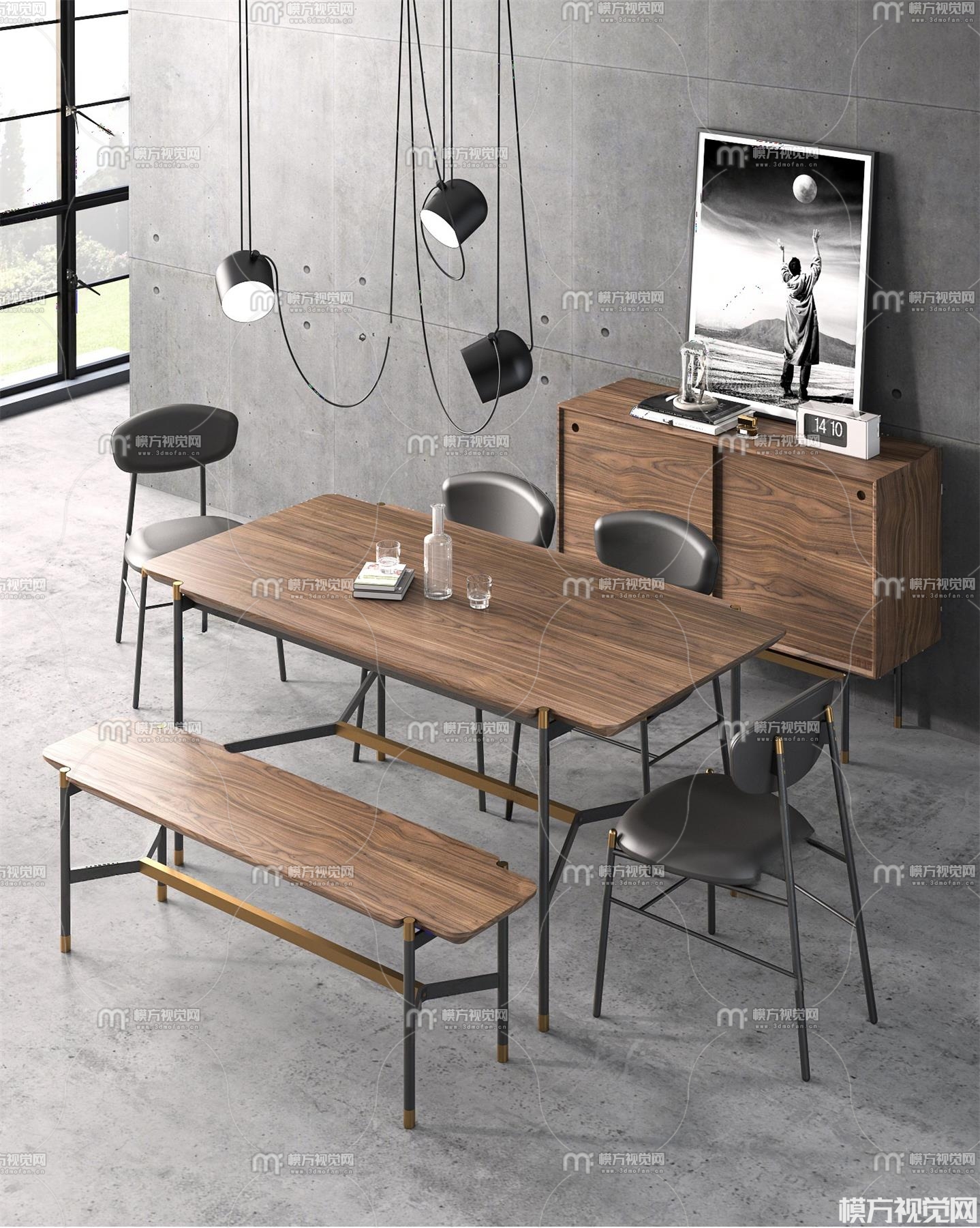 工业风餐桌椅组合3D模型(ID:0032168)