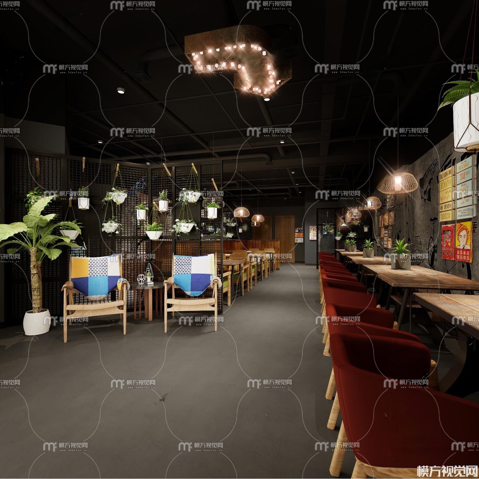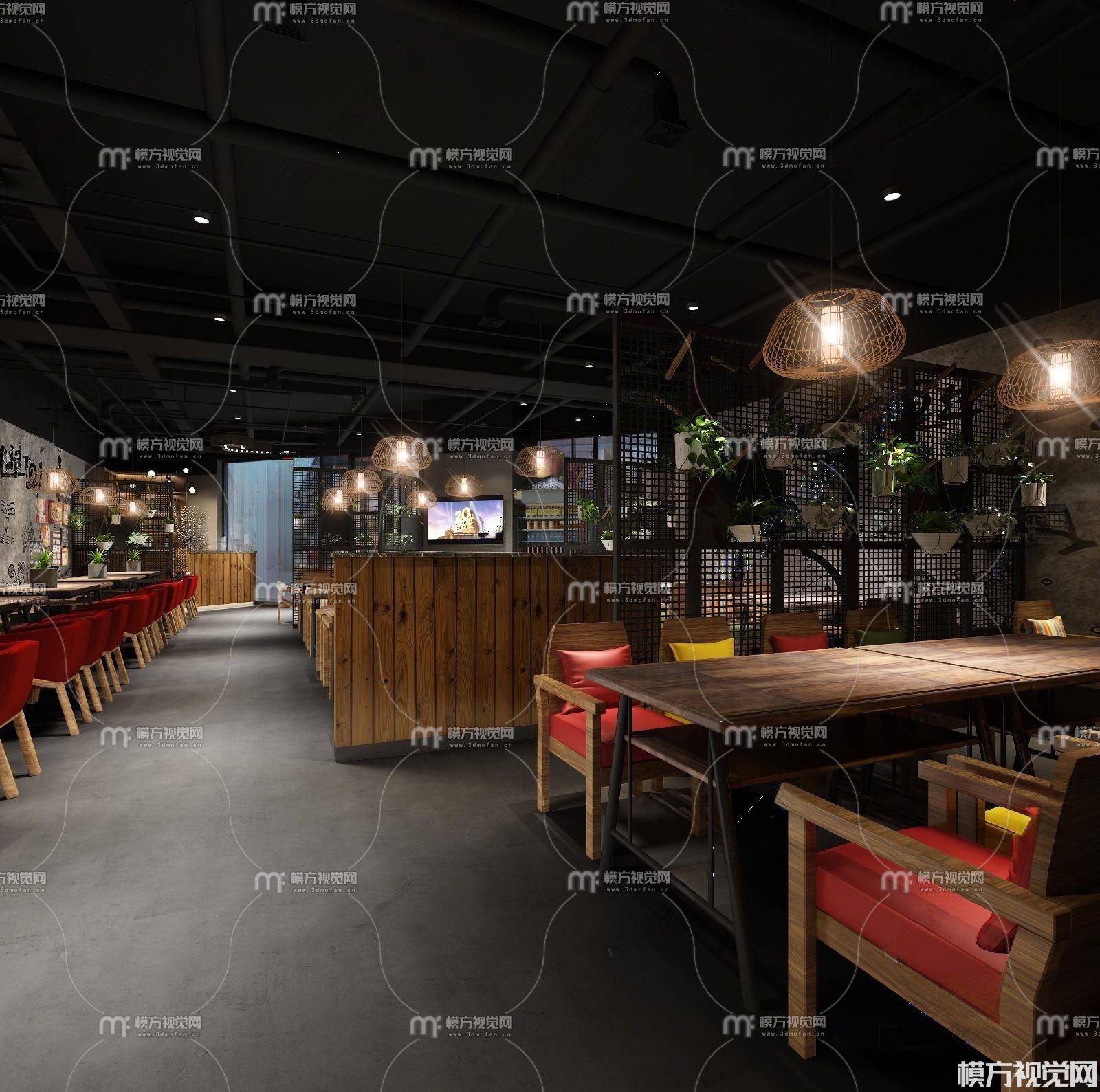 工业风火锅店3D模型(ID:0032190)